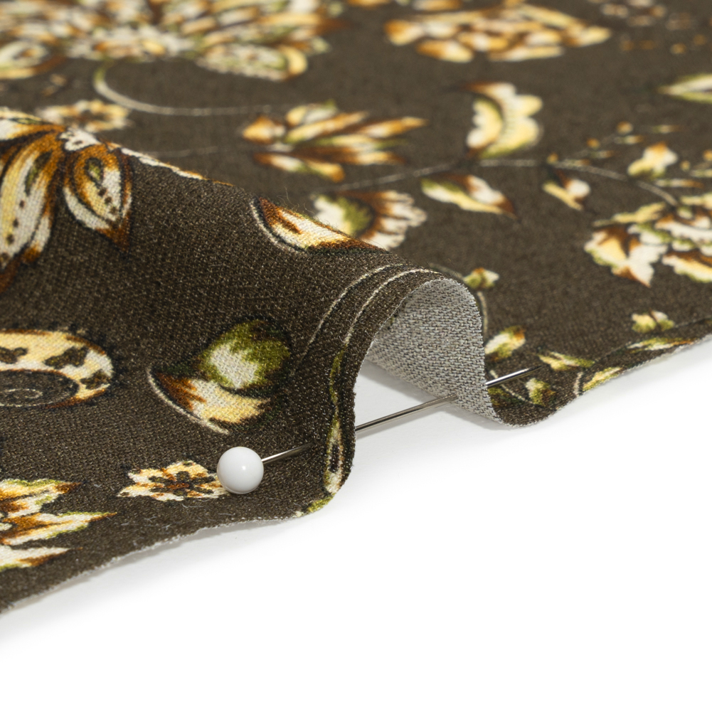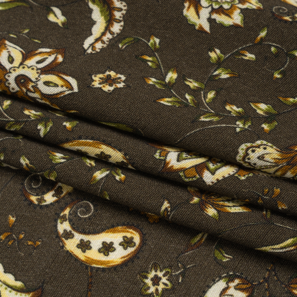 Gauzy Viscose Crepe Print - Charcoal, Green and Brown Jacobean Floral - Mood Exclusive Wooded Wonders