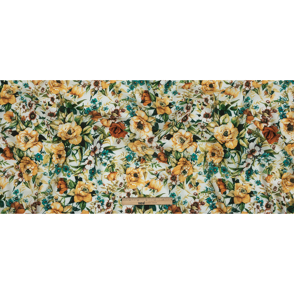 Gauzy Viscose Crepe Print - Yellow, Teal and White Floral - Mood Exclusive Jardin des Fleurs