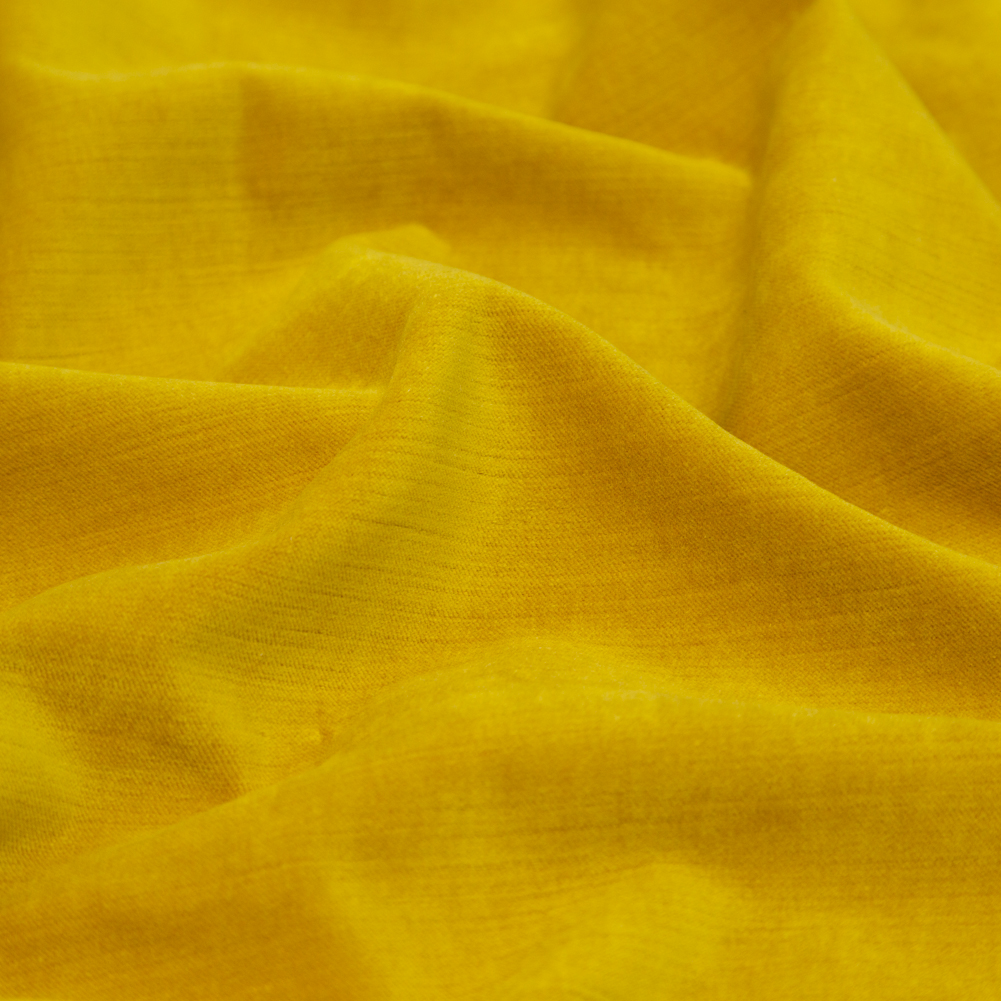 Remain quite contrary with this Gen-Z Yellow Velvet. A low-cut pile produces a soft, luxe hand ideal rich, yet comfortable interiors. As a result of slub yarns that have a two-toned appearance, a property offered by the imitation dupioni backside, a slight sheen emanates from this material. Of a medium weight and opaque, drapery and upholstery applications are both suitable options for this non-stretch textile. Heighten spaces with eclectic vibes by adding structured curtains, loveseats, and chaises.