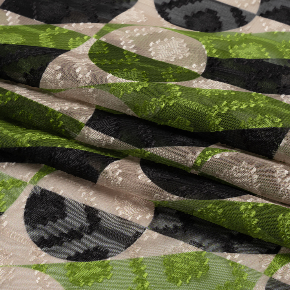Geometric Burnout Polyester Woven Print – Green Circles and Rectangles – Mood Exclusive Floyd’s Moon