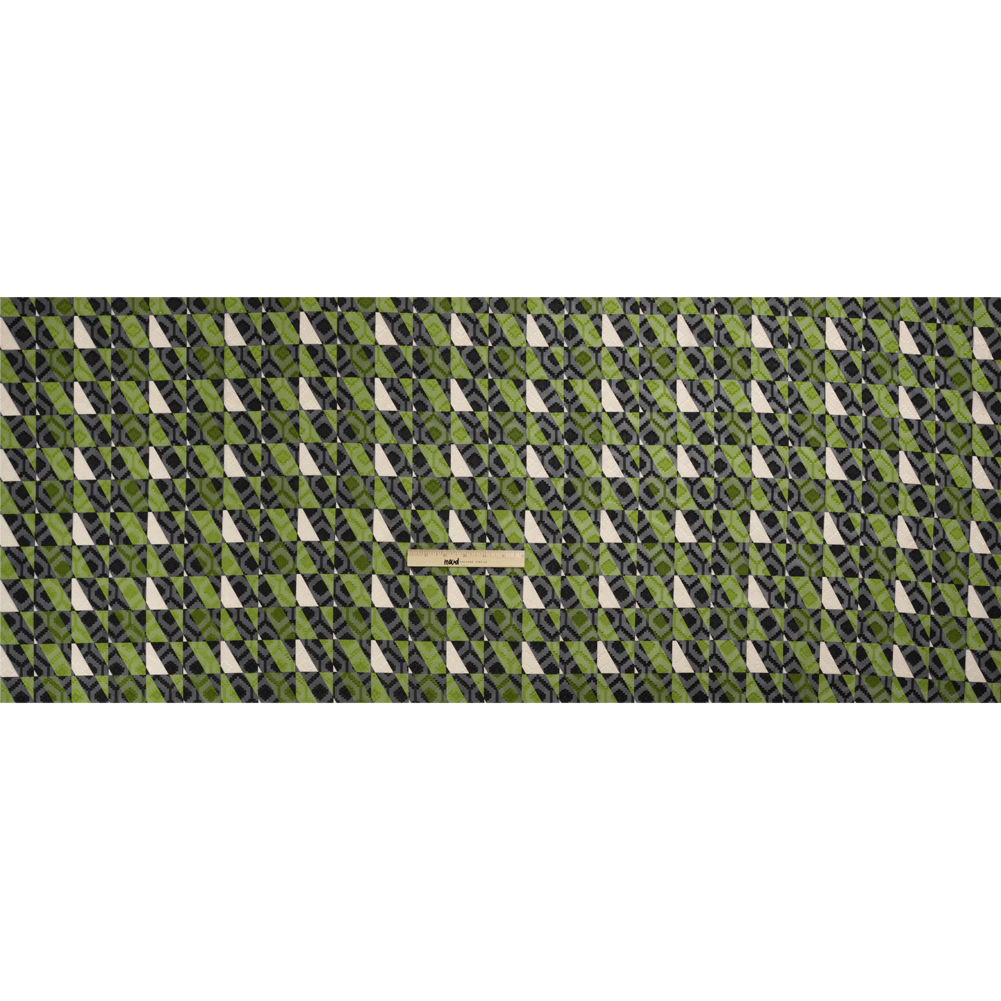 Geometric Burnout Polyester Woven Print - Green Divided Squares - Mood Exclusive Healthshire Hills