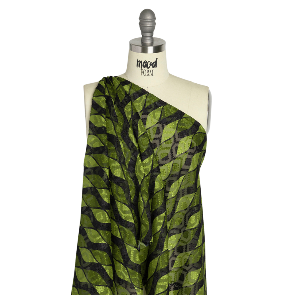 Geometric Burnout Polyester Woven Print – Leaf Green Waves – Mood Exclusive Mayfield Falls