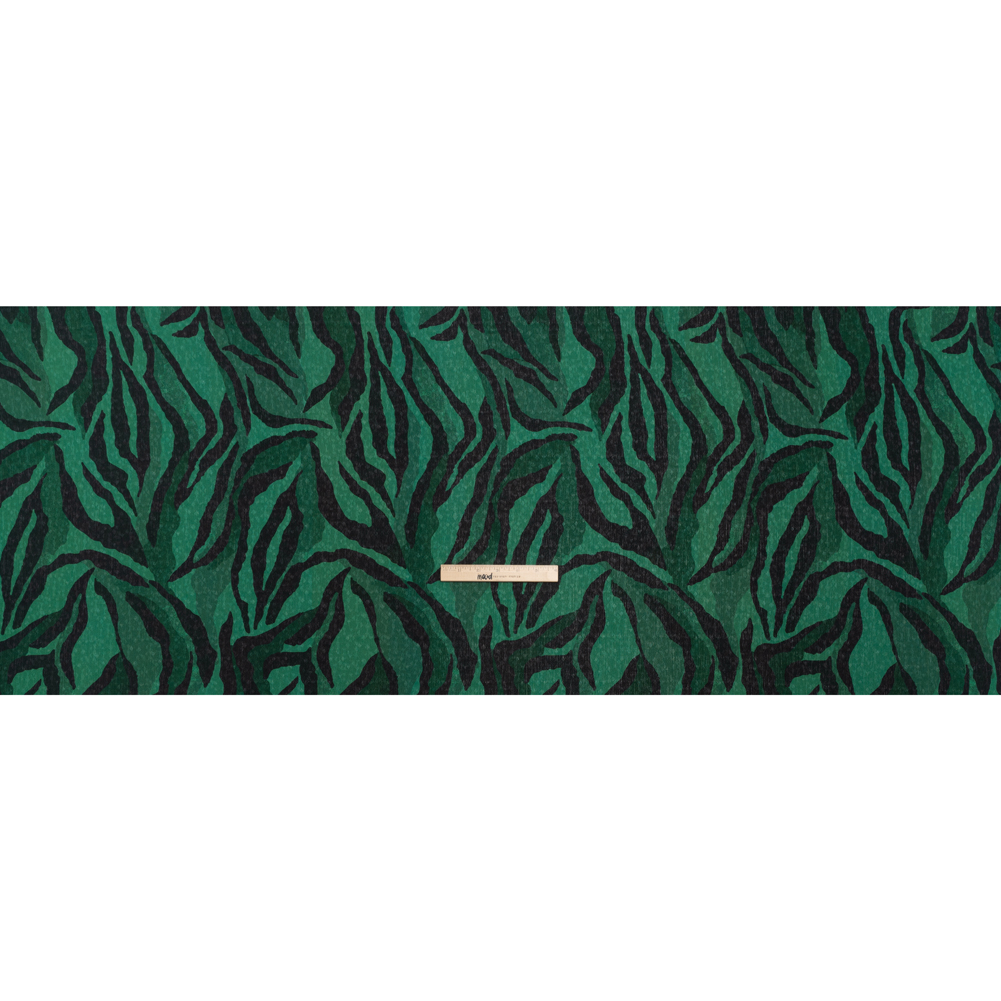Geometric Crinkled Polyester Jacquard - Green and Black Animal Stripes - Made in Italy