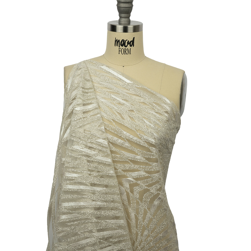 Dance like a graceful swan when you get dolled up with this Off White and Silver Geometric Feathers Glitter Tulle! Featuring a billowing drape and crisp hand.