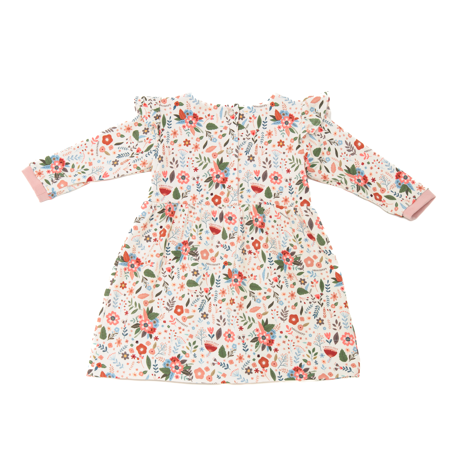 The high-waist silhouette opens at the back with buttons for easy dressing and diaper changes. Sized for 0 – 1 m, 3 – 6 m, 9 – 12 m, 18 – 24 m, and 3–4 y, this pattern includes 2 PDF files (full-size A4/US Letter templates + step-by-step photo tutorial) and comes with seam & hem allowances, metric & imperial markings, English instructions.