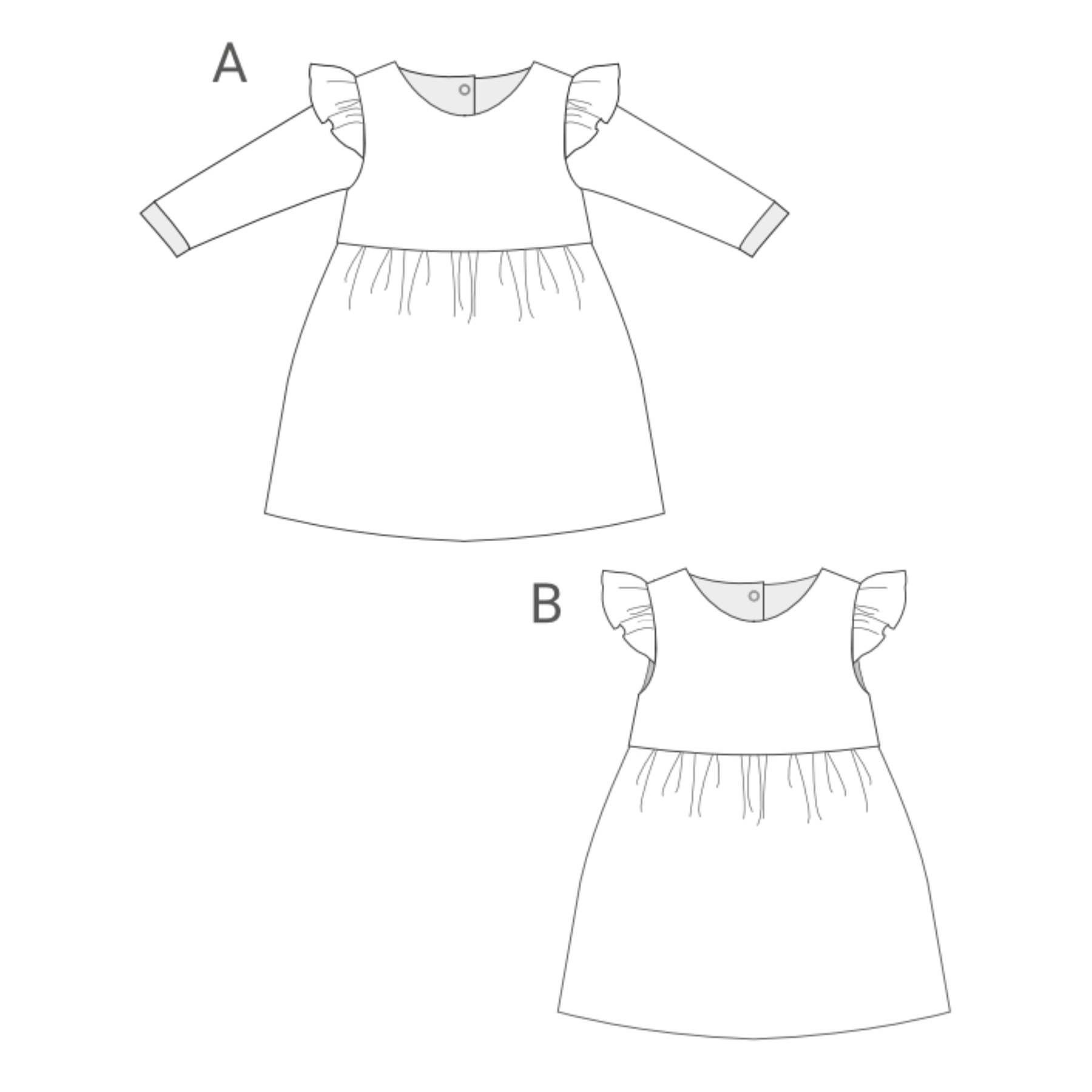 Sew a charming, retro-inspired dress for babies and toddlers with the ELLA PDF sewing pattern, featuring two delightful variants: