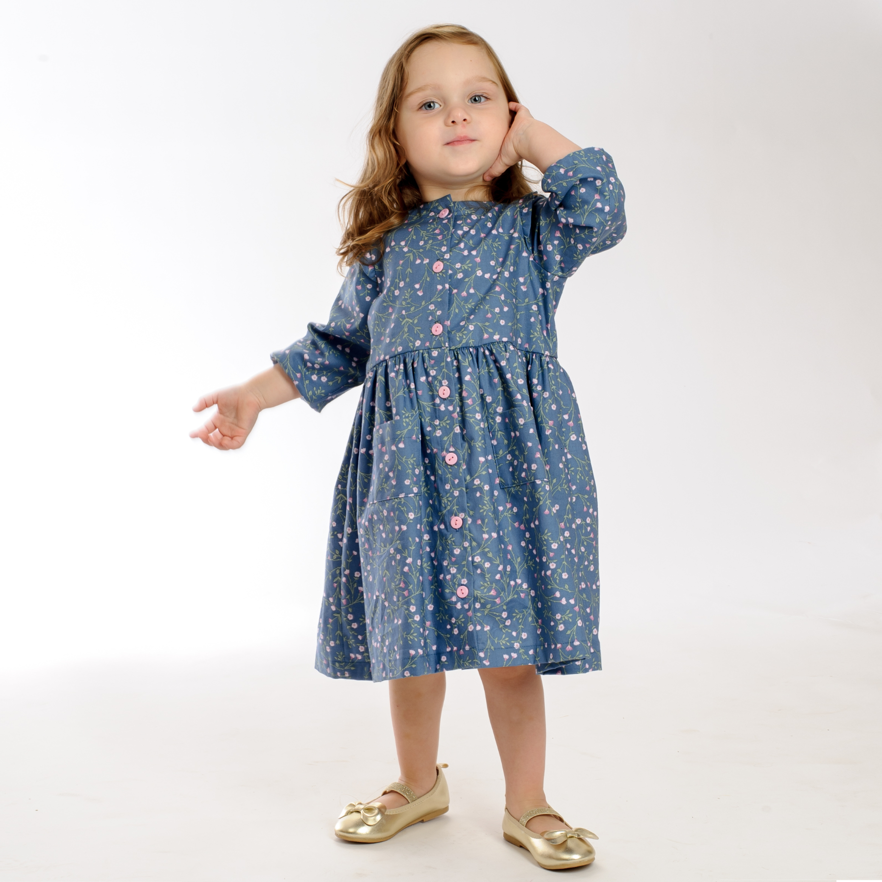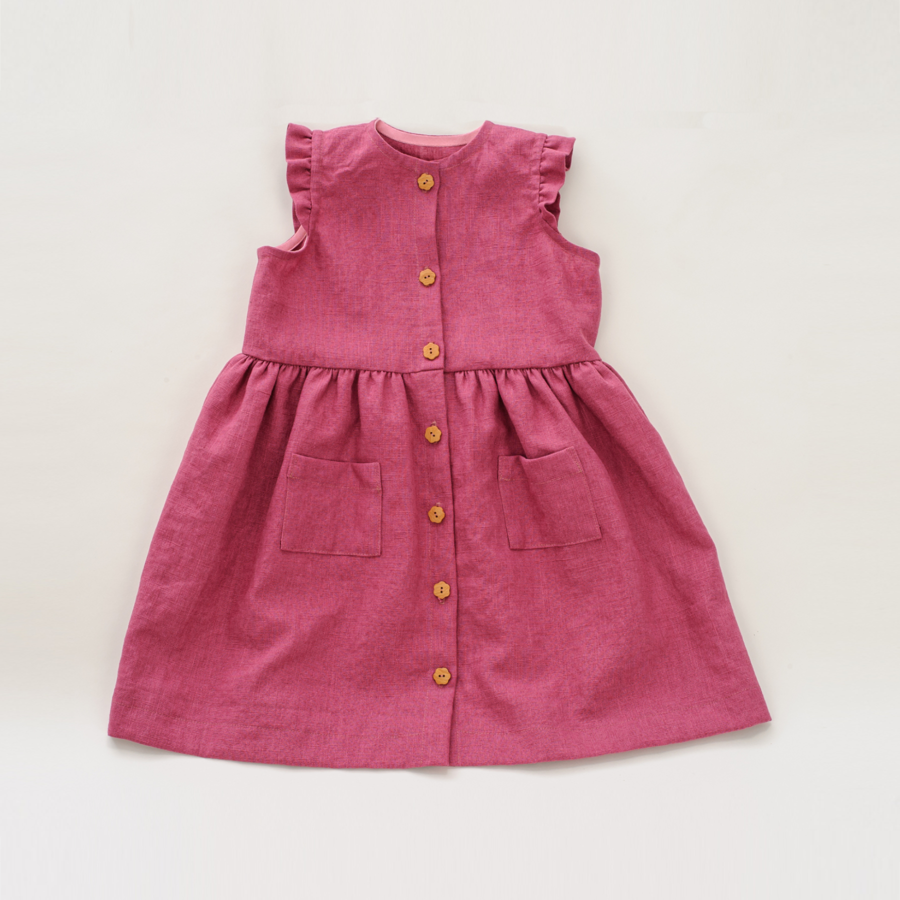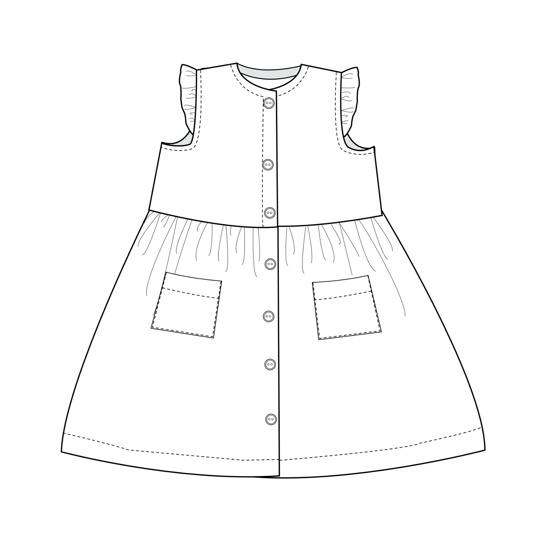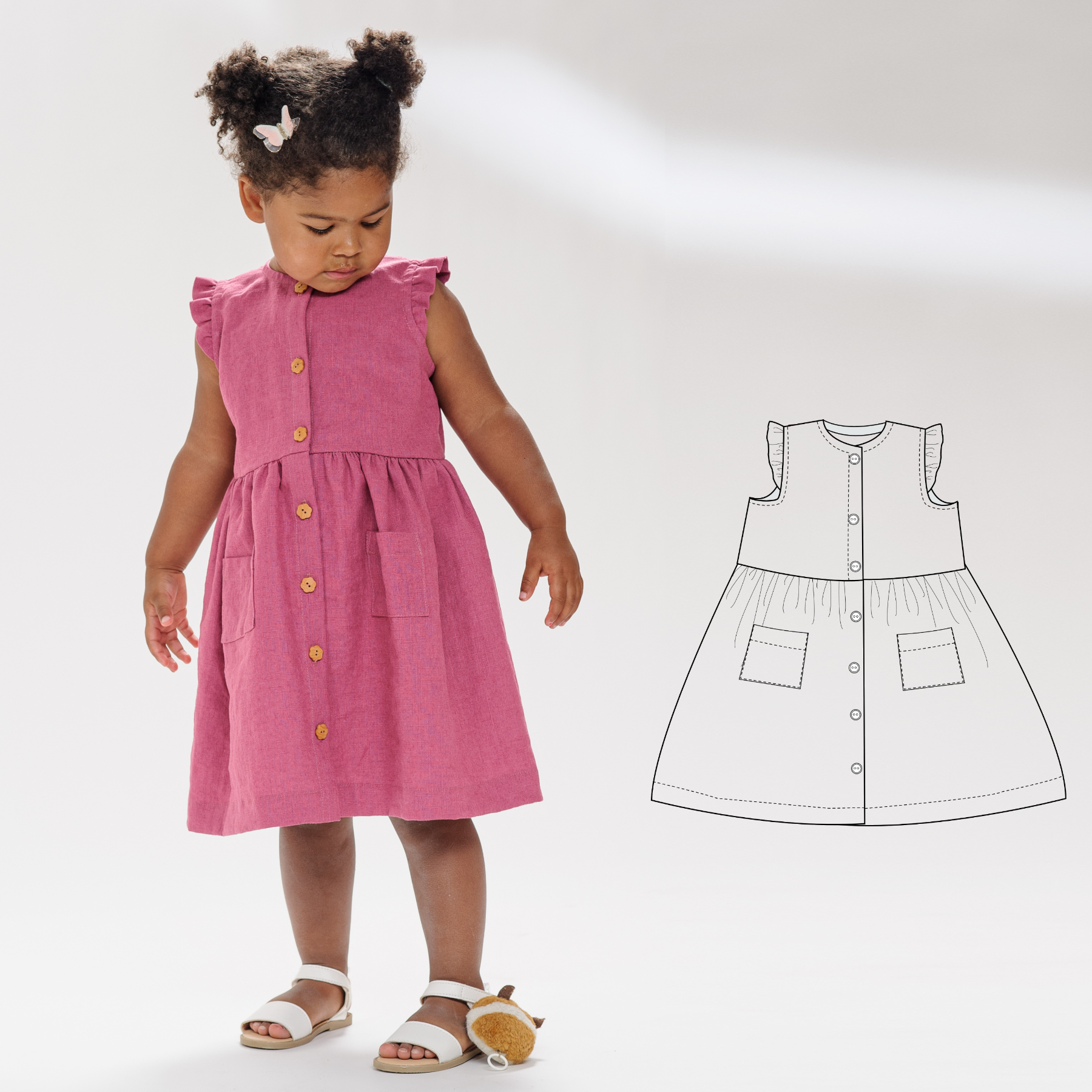Sew a timeless woven dress for girls with the MIMI PDF pattern – includes sleeveless & long sleeve options, button front & sizes 1Y–7Y. Easy to sew!