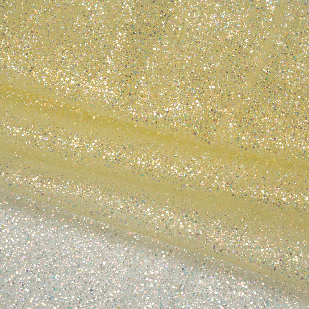 Feel like the belle of the ball in this Pale Yellow Glitter Tulle 5-yard Bundle. With a crisp, tactile hand and voluminous drape, your fairytale designs are just a stitch away!Suggested Projects: Gowns, Skirts, Dresses, Costumes, Party & Table DécorContent: 100% NylonStretch: Slight Mechanical GiveOpacity: SheerWhether you’re hidden away getting lost in stories or dancing front and center at ornate balls, this pale yellow glitter tulle will help you live out your fairytale. With a crisp, tactile hand and voluminous drape, it would make a great choice for overlays on evening gowns, tulle skirts, and gathered empire-waist dresses, as well as dance costumes, or use it for voluminous accent sleeves and veils. Plus, this tulle adds the perfect sparkle to party decorations and tablescapes, for any special occasion. Sheer, a lining may be added where comfort and opacity are desired. Is this shimmering shade not your match? Fear not! This dazzling 5-yard bundle of glitter tulle is part of a vibrant collection, bursting with a spectrum of vivid, sparkling hues perfect for all your radiant creations.