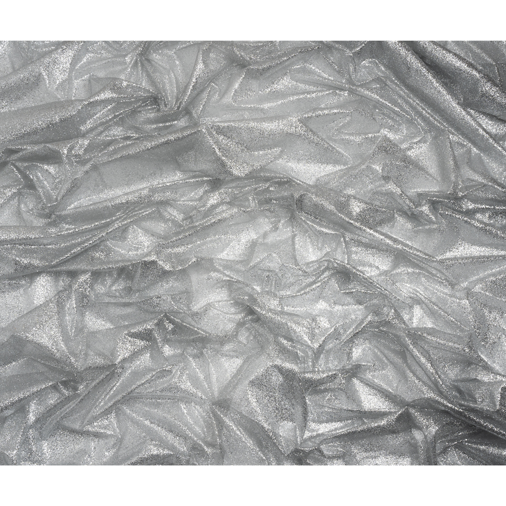 Moonlight’s silver glow is eternally captured atop this Silver Glitter Tulle 5-yard Bundle. With a crisp, tactile hand and voluminous drape, your fairytale designs are just a stitch away!Suggested Projects: Gowns, Skirts, Dresses, Costumes, Party & Table DécorContent: 100% NylonStretch: Slight Mechanical GiveOpacity: SheerStep into the light, awash with a magical glimmer, in this silver glitter tulle.With a crisp, tactile hand and voluminous drape, it would make a great choice for overlays on evening gowns, tulle skirts, and gathered empire-waist dresses, as well as dance costumes, or use it for voluminous accent sleeves and veils. Plus, this tulle adds the perfect sparkle to party decorations and tablescapes, for any special occasion. Sheer, a lining may be added where comfort and opacity are desired. Is this shimmering shade not your match? Fear not! This dazzling 5-yard bundle of glitter tulle is part of a vibrant collection, bursting with a spectrum of vivid, sparkling hues perfect for all your radiant creations.