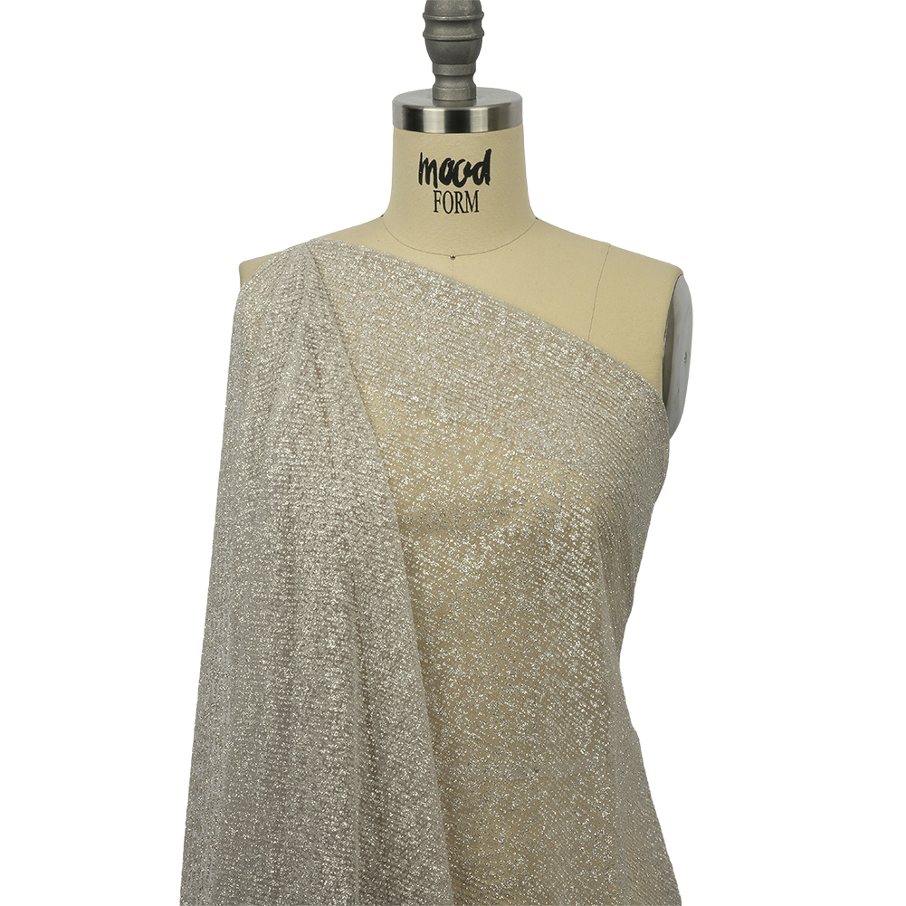 There's nothing better than this simply extravagant Light Gray and Silver Abstract Striations Glitter Tulle. Featuring a soft but crisp hand and flexible, voluminous drape.Suggested Projects: Gowns, Skirts, Dresses, VeilsContent: 100% PolyesterStretch: Slight Mechanical GiveOpacity: SheerAn array of dotted lines of silver glitter gleams against a light gray tulle base, altogether with a soft but crisp hand. Its flexible, voluminous drape makes it a great choice for overlays on evening gowns, tulle skirts, and gathered empire-waist dresses, as well as dance costumes, or use it for voluminous accent sleeves and veils. Sheer, a lining may be added where comfort and opacity are desired.