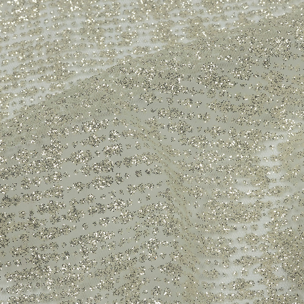 You and this Light Mint and Silver Abstract Striations Glitter Tulle: it was mint to be! Featuring a soft but crisp hand and flexible, voluminous drape.