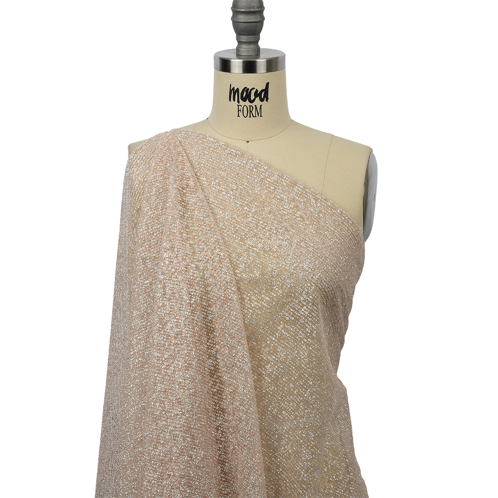 No need to fish for compliments when this Salmon and Silver Abstract Striations Glitter Tulle just brings them right in! Featuring a soft but crisp hand and flexible, voluminous drape.Suggested Projects: Gowns, Skirts, Dresses, VeilsContent: 100% PolyesterStretch: Slight Mechanical GiveOpacity: SheerAn array of dotted lines of silver glitter gleams against a salmon pink tulle base, altogether with a soft but crisp hand. Its flexible, voluminous drape makes it a great choice for overlays on evening gowns, tulle skirts, and gathered empire-waist dresses, as well as dance costumes, or use it for voluminous accent sleeves and veils. Sheer, a lining may be added where comfort and opacity are desired.