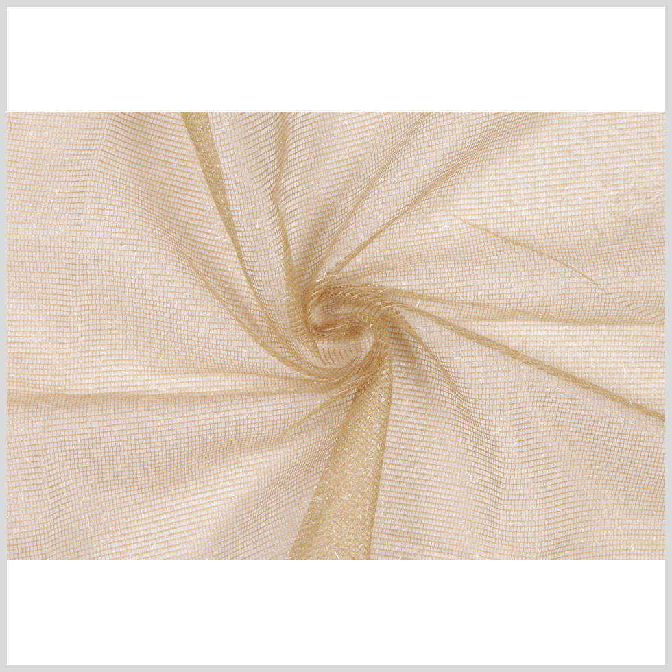 100% Polyester. Lightweight sheer fabric. Netting texture of light tan and clear thread gives a soft shimmer. Ideal for layering to add texture to fashionable separates.