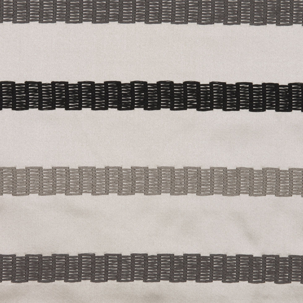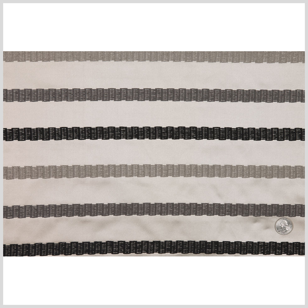 100% Polyester. Medium weight. Contemporary embroidered stripe pattern through sateen texture. Suitable for upholstery, home accents and drapery.