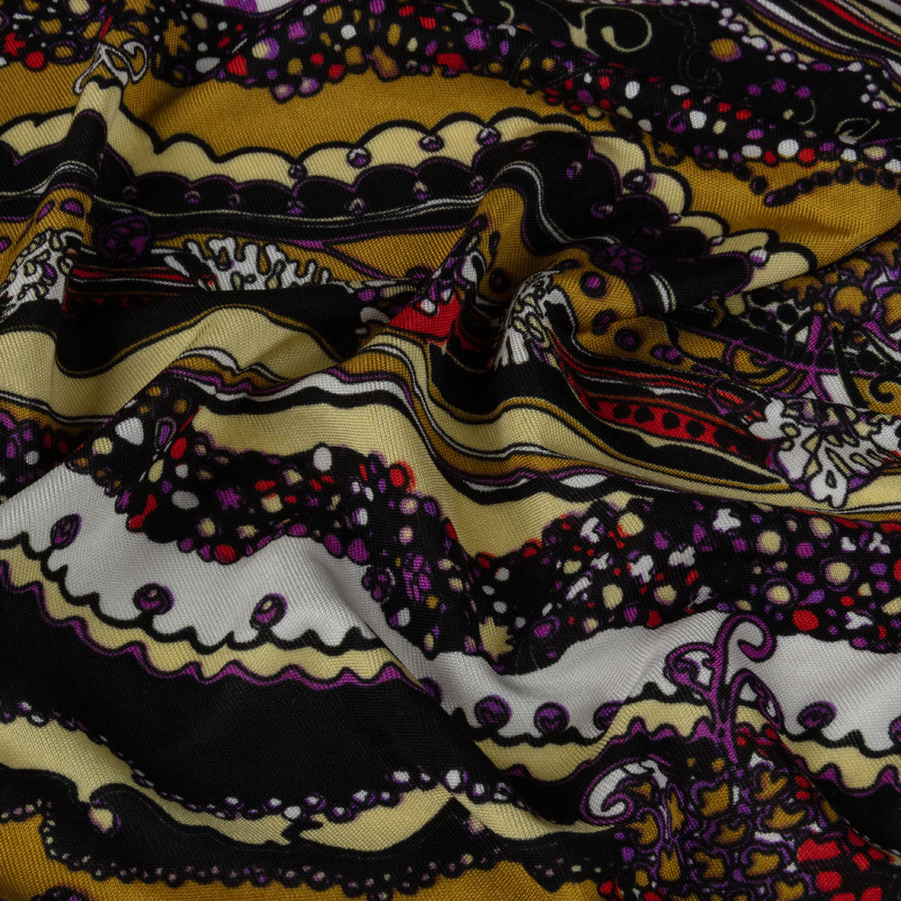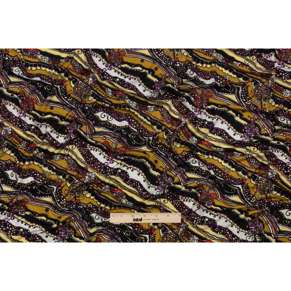 Gold, Purple and Black Fancy Diagonal Stripes Silk Jersey