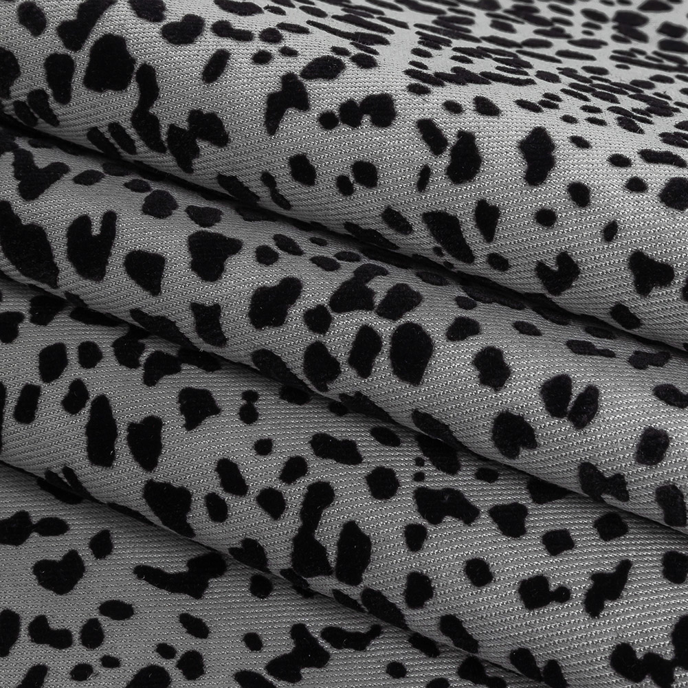 Gray and Black Cheetah Patterned Flocked Stretch Cotton Twill