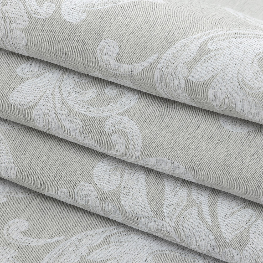 Embrace gray-tness with this Gray and White Damask Double Wide Drapery Jacquard! A light heathered look is elegantly enhanced via a woven damask pattern featuring leaf-like motifs in white, while the same pattern in reverse colors is featured on the other side of the fabric. Lightly textured thanks to the weave structure, a full drape is ideal for statement curtains and light upholstery projects. Opaque, a lining isn't necessary but may be desirable for protection against sun-damage in windows with a lot of light.