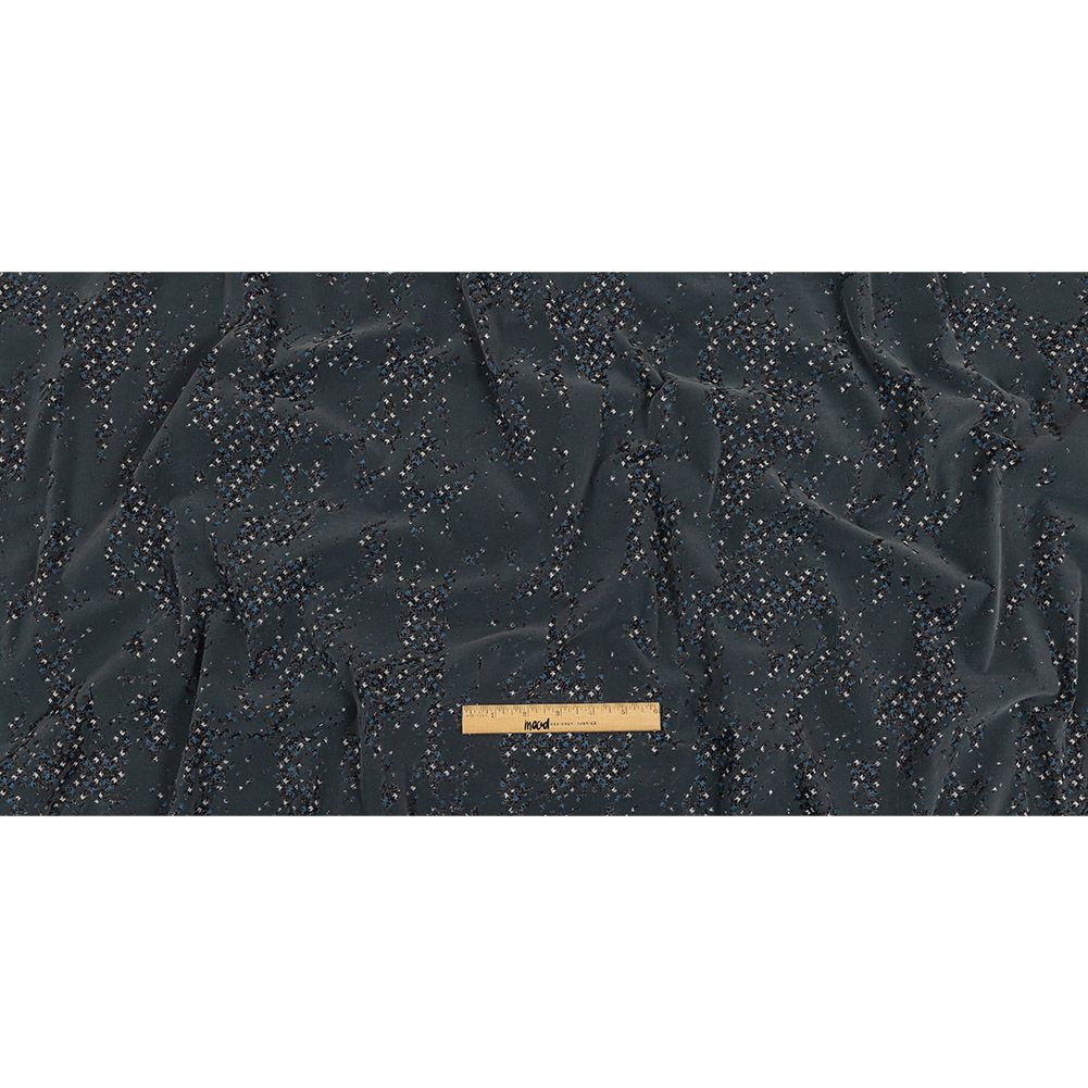 No need for a stylish distress signal—our Gray, Blue and Sleet Geometric Printed Cotton Shirting featuring Gray Distressed Flocking will create all of the punk-rock style you could desire! On an intricate black and gray cotton ground, tiny blue and sleet gray geometric designs dance evenly, all overlaid with a distressed, velvet-like flocking. Perfect for fans of textural fabrics, this shirting is crisp with a small amount of widthwise give. Design button-downs and A-line dresses, lightweight blazers, or play with bustiers and short shorts. Opaque, a lining may provide a sleek finish if desired.Please note: The repeat measurements are for the largest design on the fabric, and do not indicate the repeat of any smaller, additional designs.