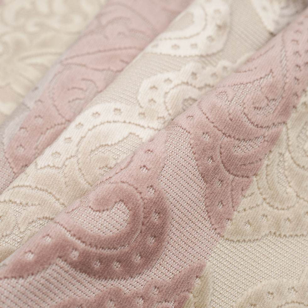 Gray/Pink Stiped Damask Cut-Out Velvet