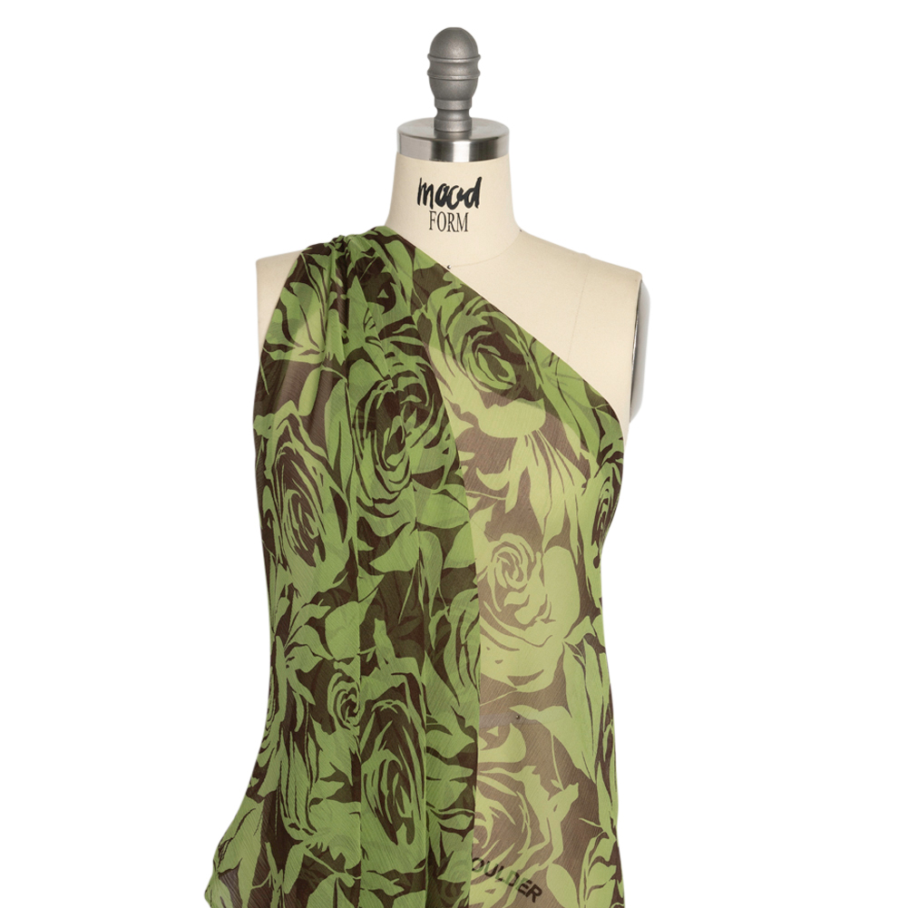 Green and Brown Rose Garden Crinkled Silk Chiffon