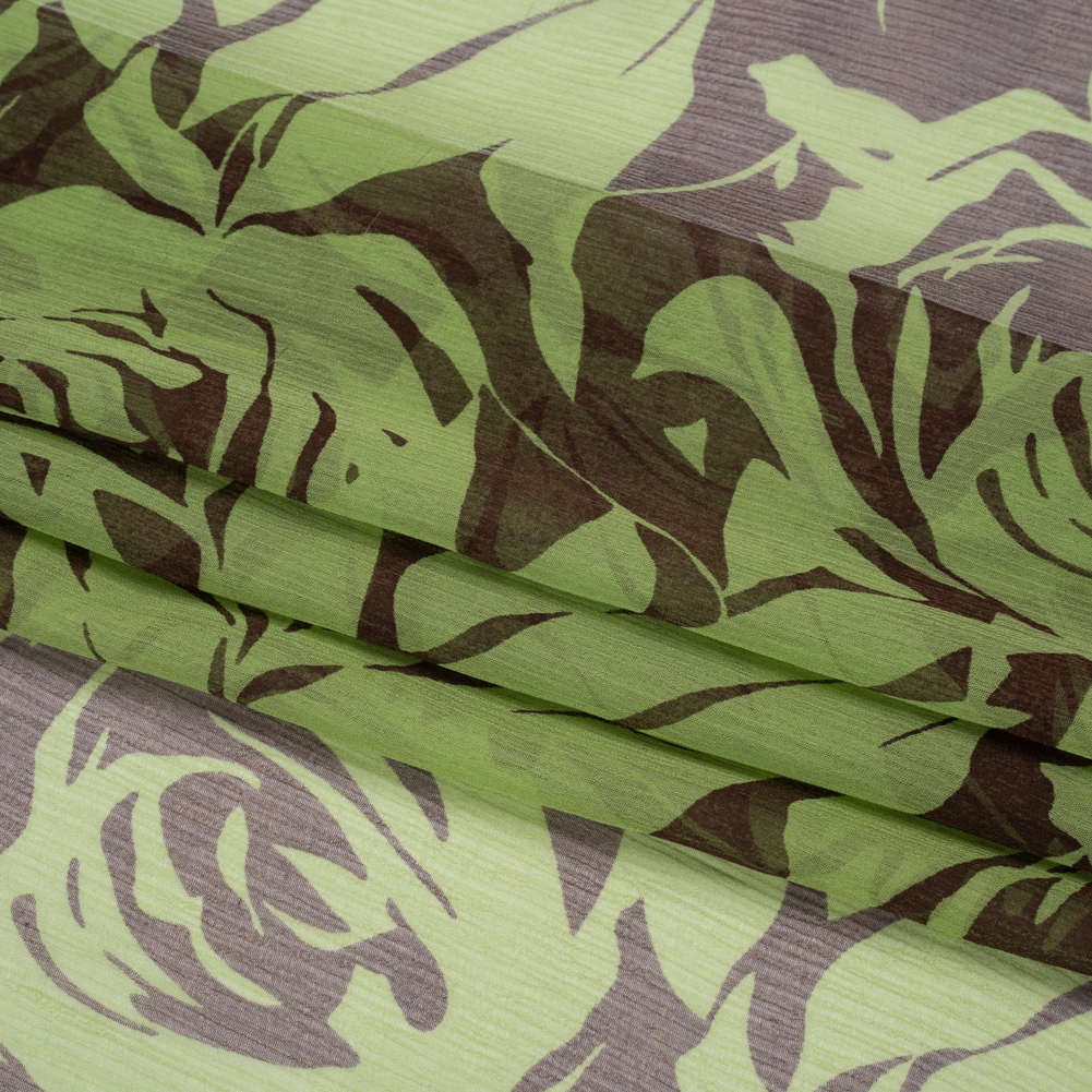 Like a soft kiss from a rose, this Green and Brown Rose Garden Crinkled Silk Chiffon brings an organic aura to your wardrobe.