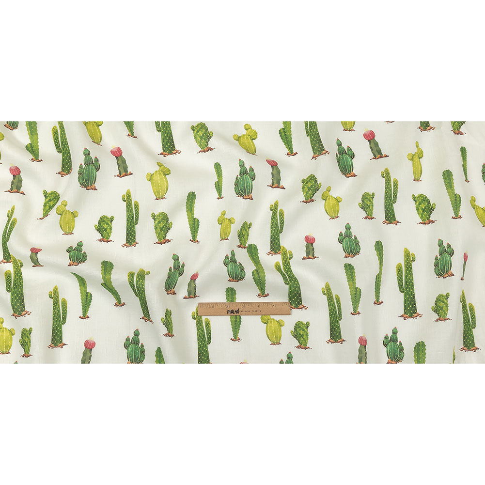 Green and Ivory Cactuses Medium Weight Linen Woven