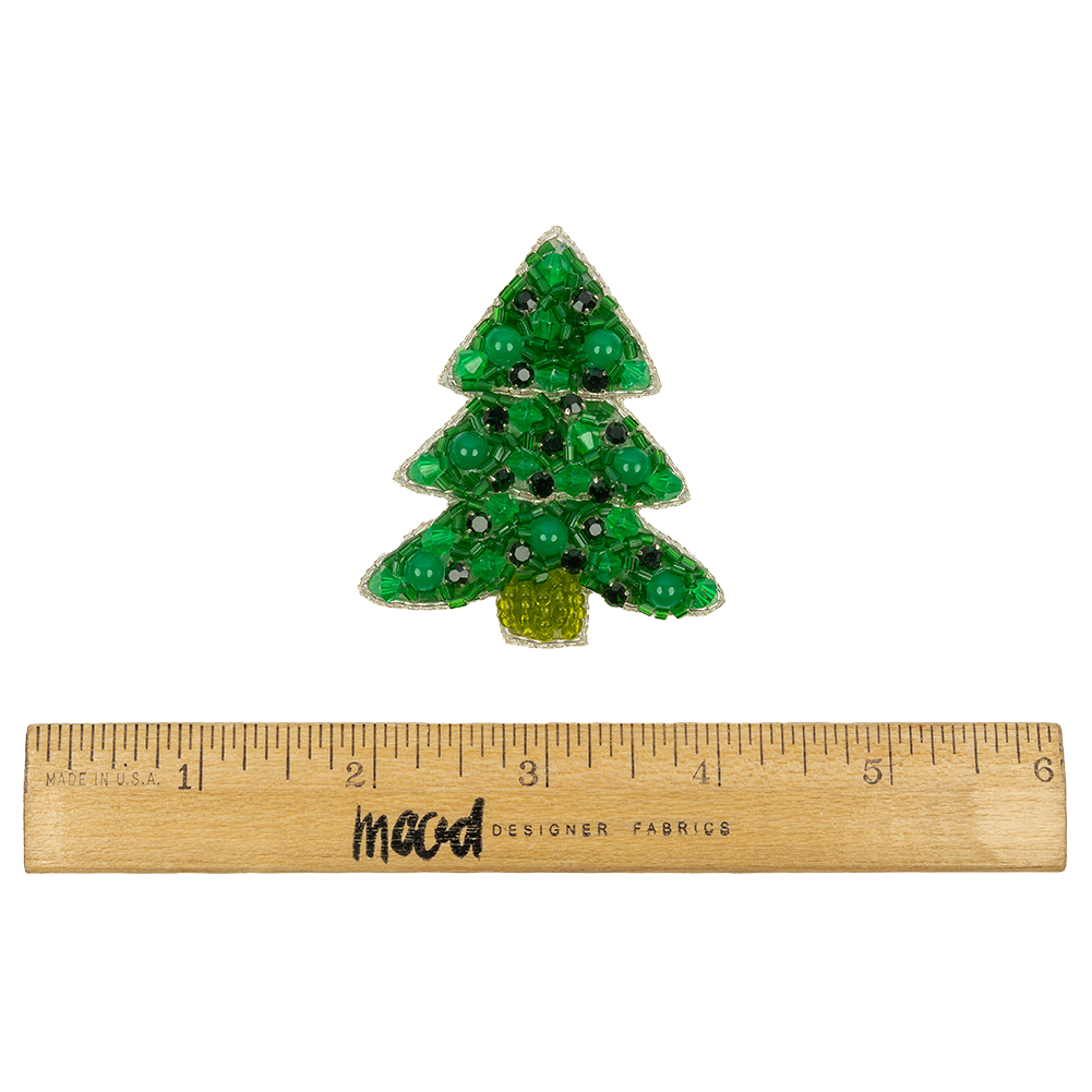 Our captivating Green and Silver Christmas Tree Rhinestones and Glass Beaded Appliqué shines just as bright as any holiday light! Measuring about 2.