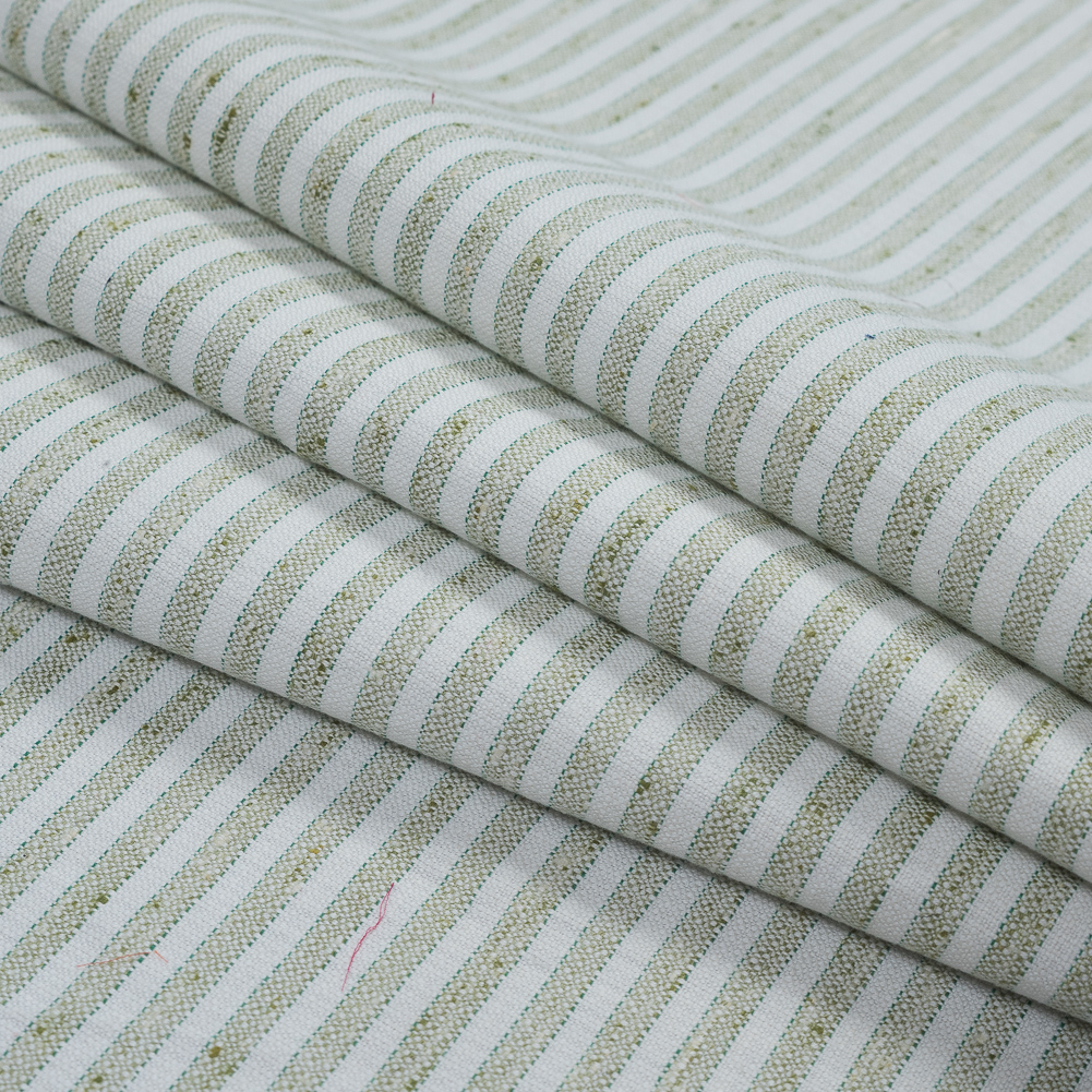 Green and White Bengal Striped Cotton Tweed