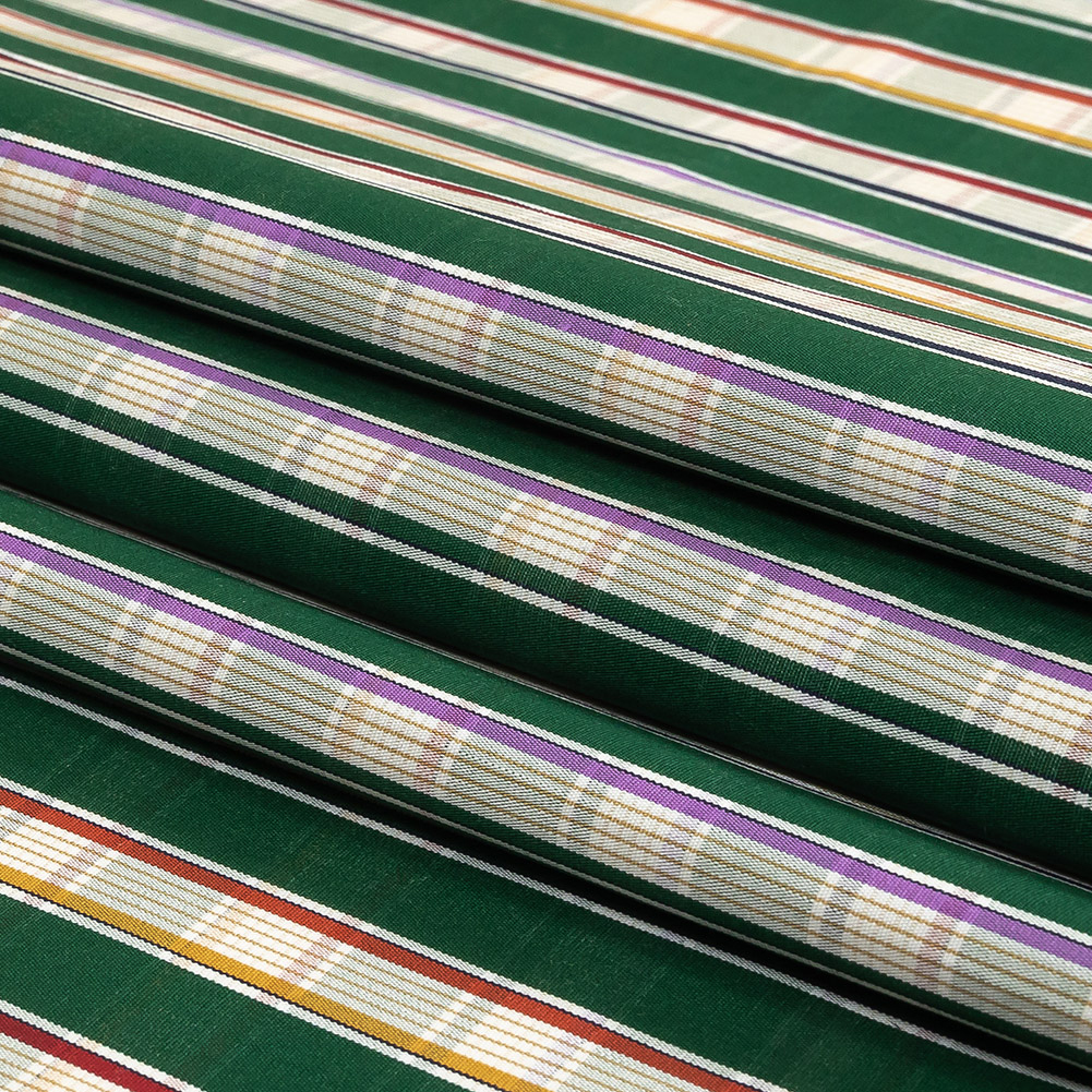 Green, Purple and Yellow Subtle Plaid Stripes Cotton Shirting