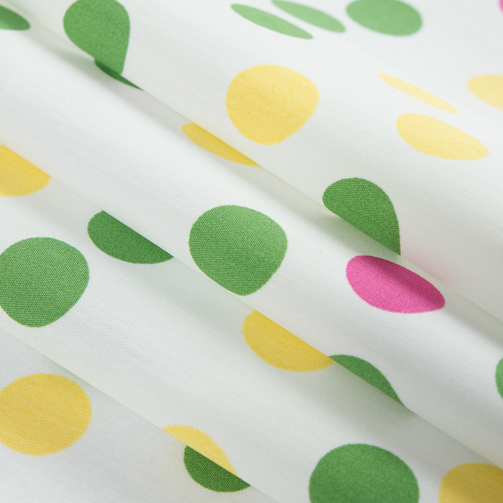 Green/Yellow/Pink Polka Dots Printed Cotton Poplin