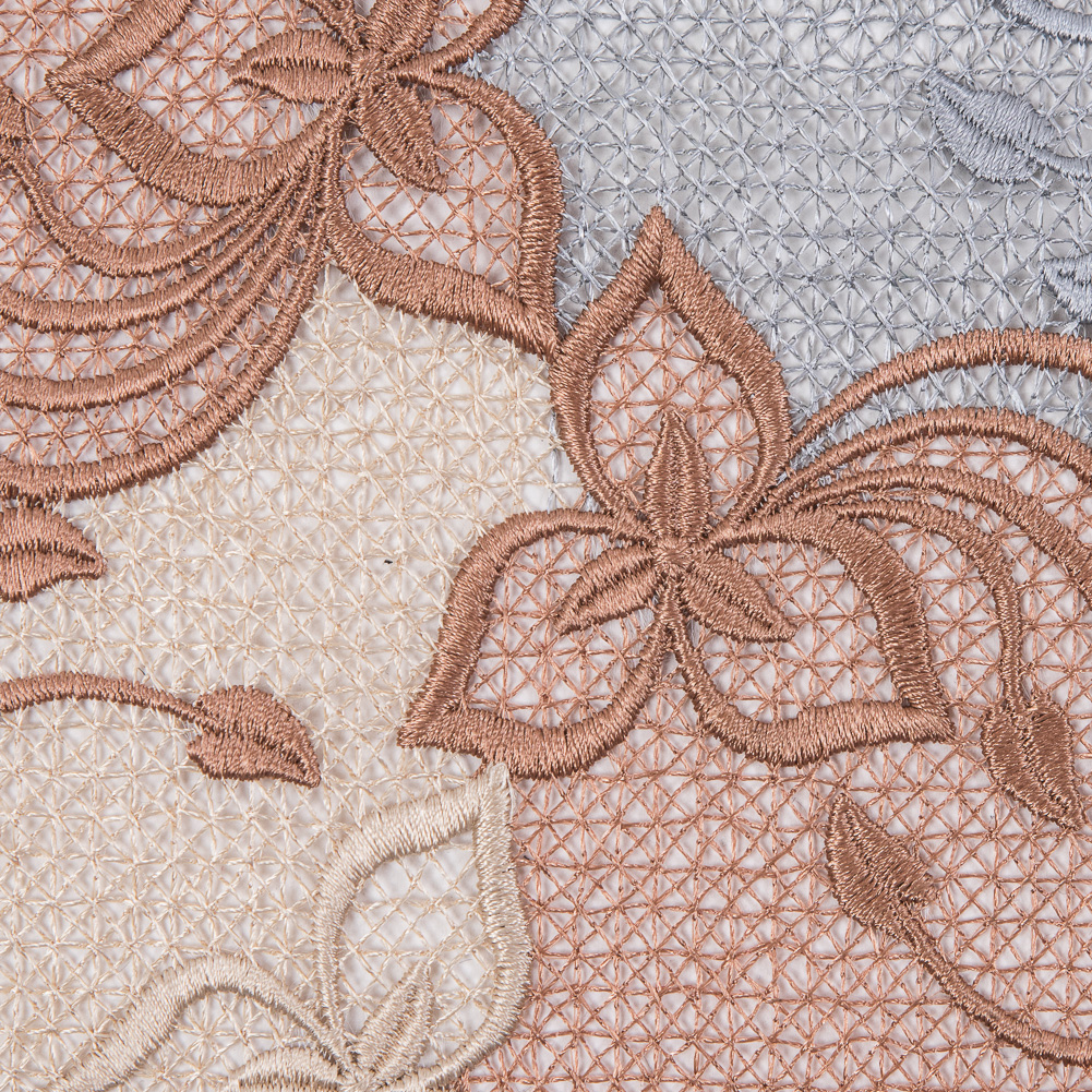 Live a life of whimsy when you take home this Copper, Gray and Cream Floral Tri-Color Lace.
