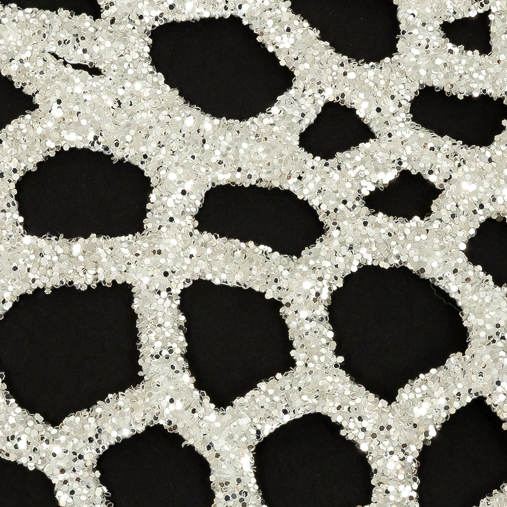 Let this premium Luxury Off-White Thick Webbed Guipure Lace with a Silver Glitter Topcoat wind its way into your life.