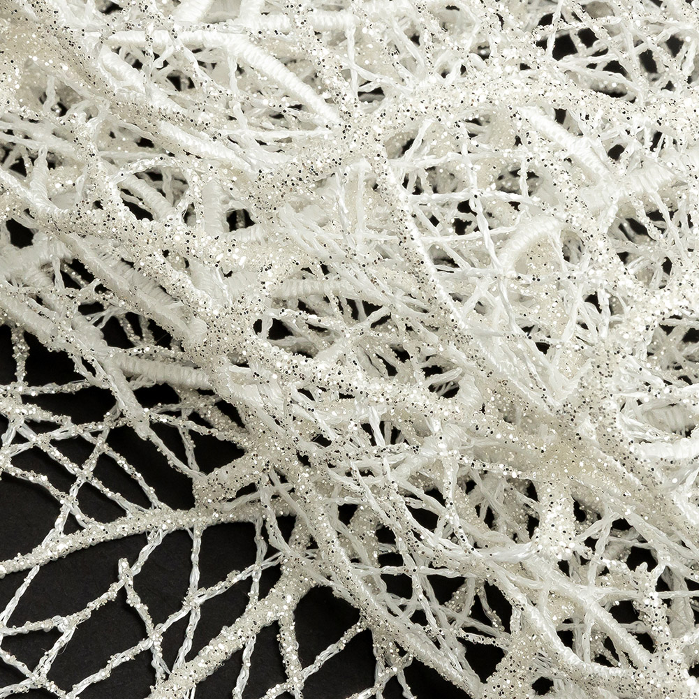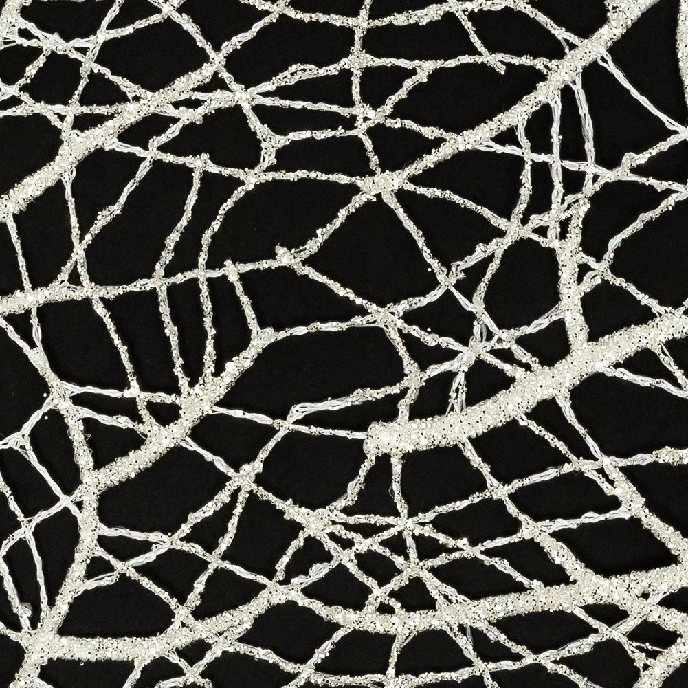 Spin a fantastic tale with your clothes and this premium Luxury Off-White Thin Webbed Guipure Lace finished with a Silver Glitter Topcoat! Thin strands of various weights wind and twine their way through a cobweb pattern, all coated in silver glitter.