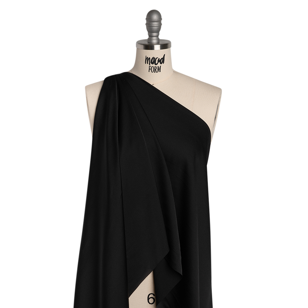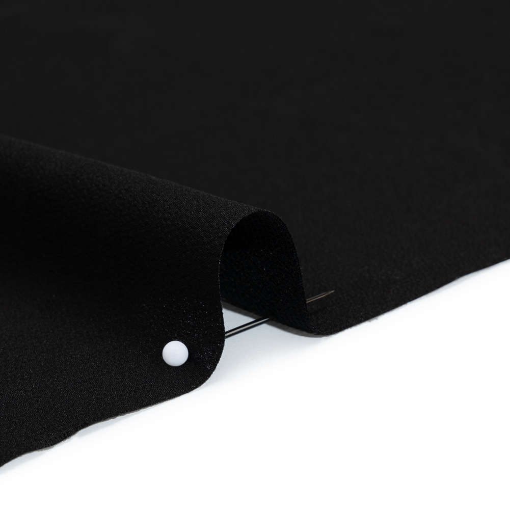 You don’t have to give up your Gothic style this summer with this Black Hammered Polyester Satin—featuring a sleek hand and fluid drape.Suggested Projects: Shirts, Pants, Dresses, SkirtsContent: 100% PolyesterStretch: NoneOpacity: Slightly TranslucentThis black polyester satin will easily create sophisticated staple pieces. The gently luminous face boasts a sleek, slightly grainy hand—thanks to a hammered finish—and fluid drape, easily inspiring easy and breezy warm-weather styles. With an incredibly light weight, use it to craft wide-leg pants and button-up shirt sets, beachy wrap dresses, slip skirts, and delicate tank tops—equally ready to accompany you to the office or outside to enjoy the summer heat. Slightly translucent, we recommend adding a lining or layering over camis or slips.