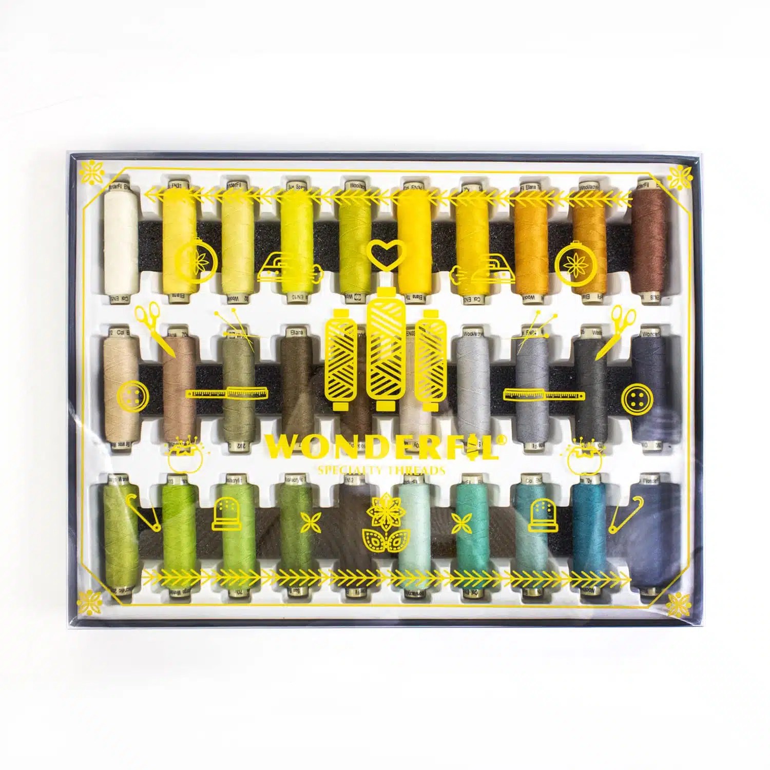 Own Ellana’s full collection of 60 colors and save money instead of buying individual spools. With colors designed by Sue Spargo, they are dyed to perfectly match Sue’s Efina™ Giza cotton thread and wool fabric lines so that projects can easily be coordinated.