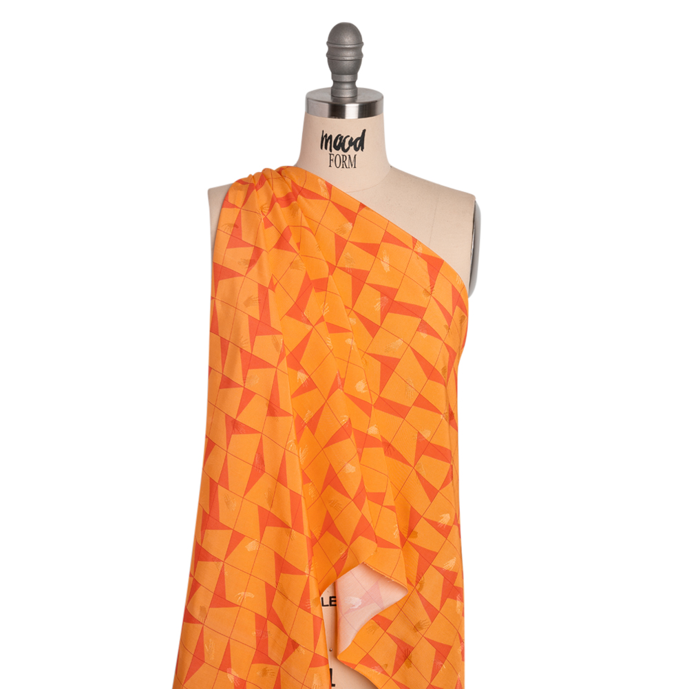 Hands Viscose Jacquard Print – Orange Broken Squares – Mood Exclusive Theorem Thoughts