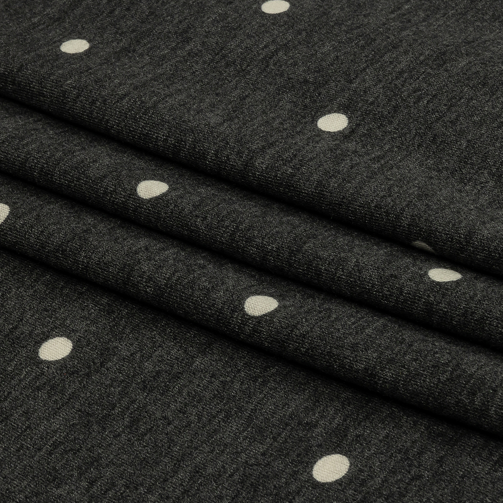 Heathered Bristol Black and White Alyssum Polka Dots Stretch Polyester and Rayon French Terry