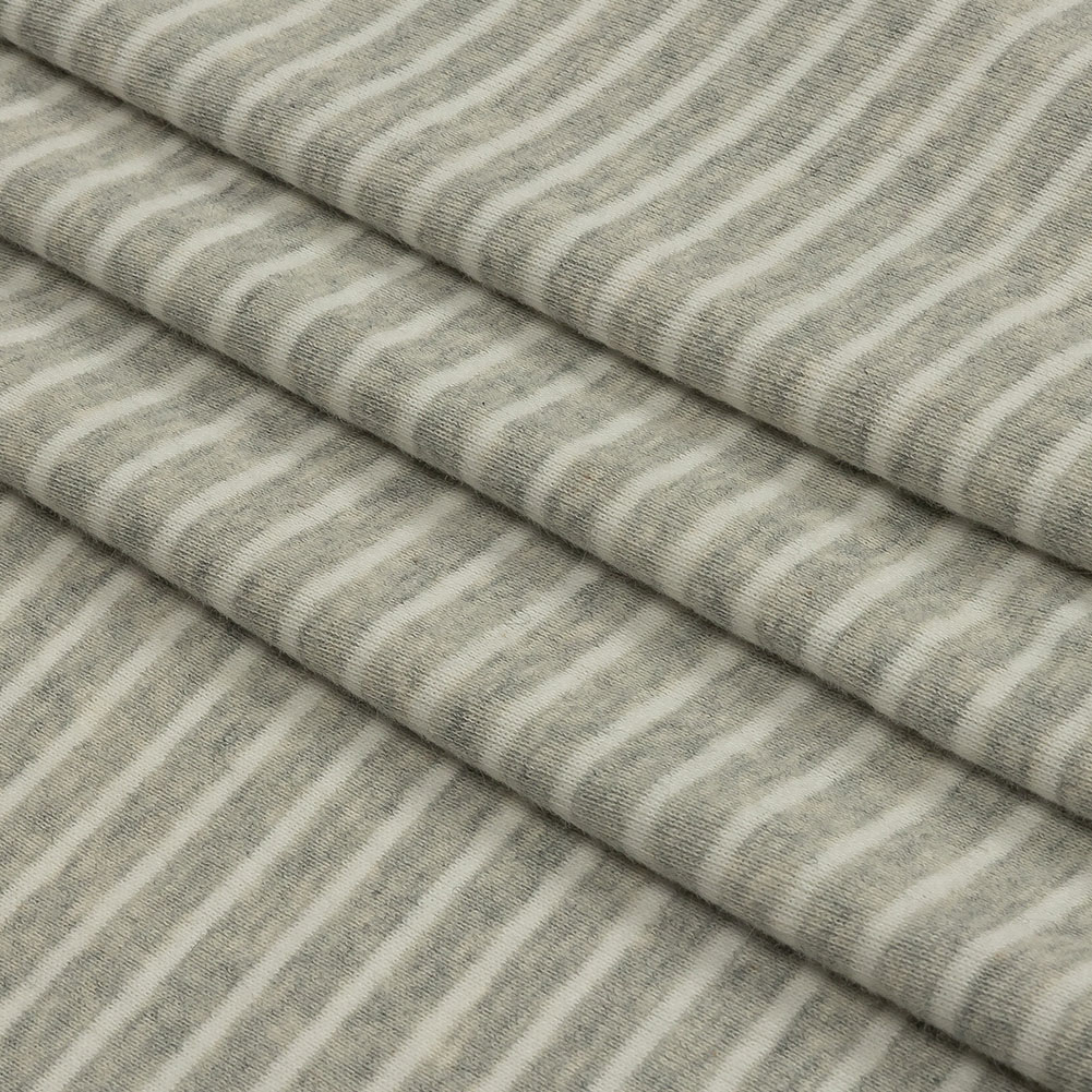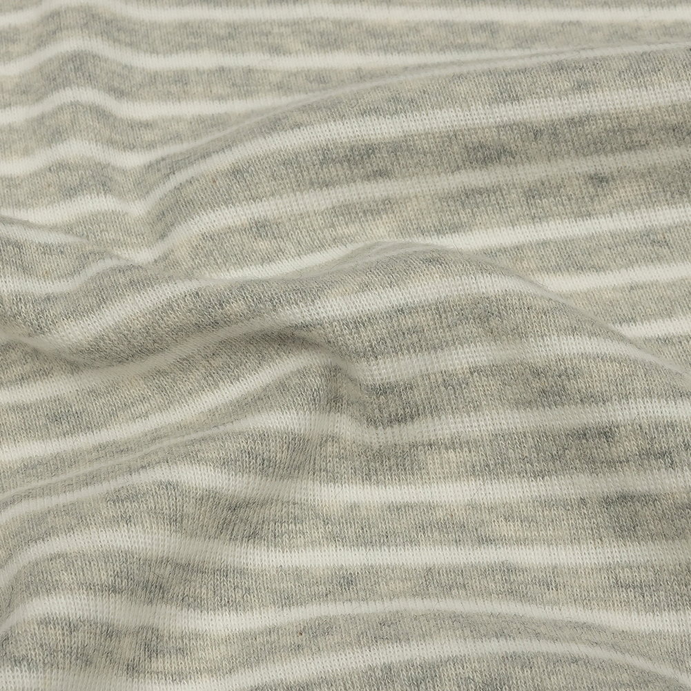 Heathered Gray and White Striped Cotton 1x1 Rib Knit