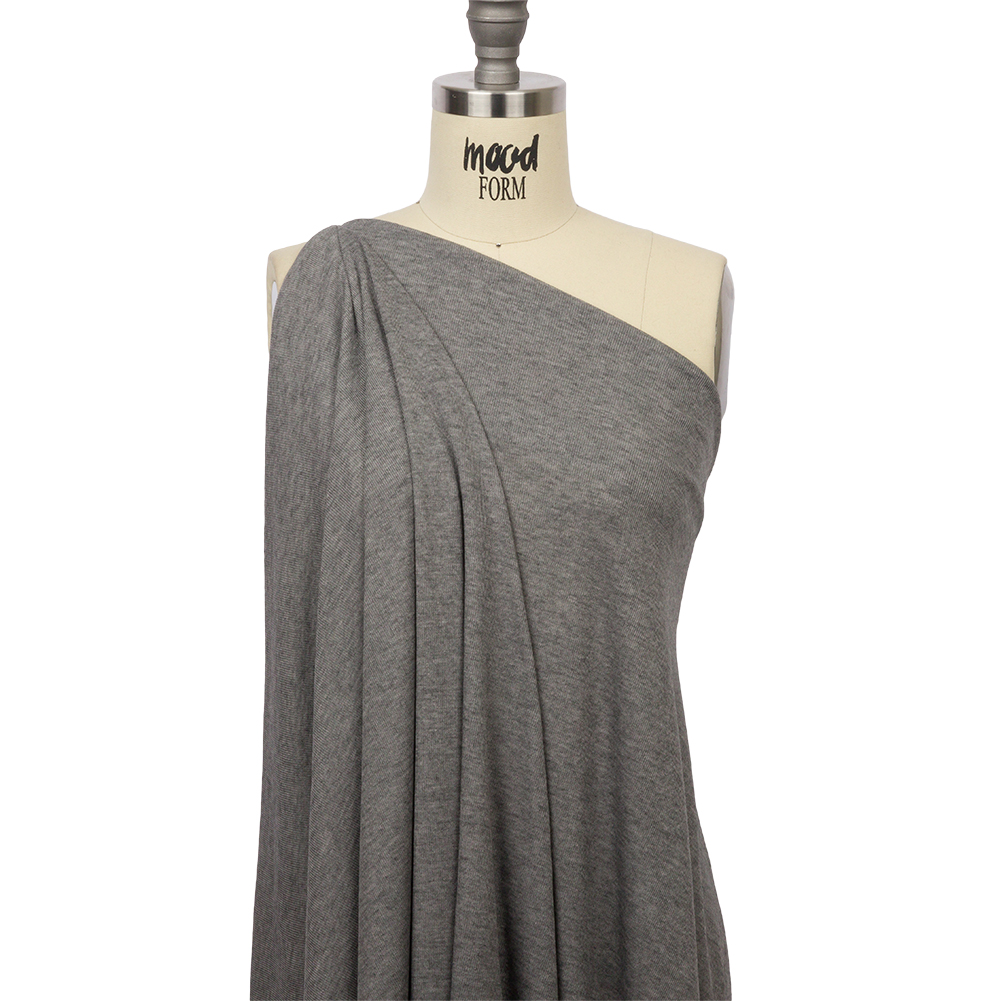 Bring comfort to your wardrobe with this Heathered Pewter Lightweight Rayon Rib Knit.