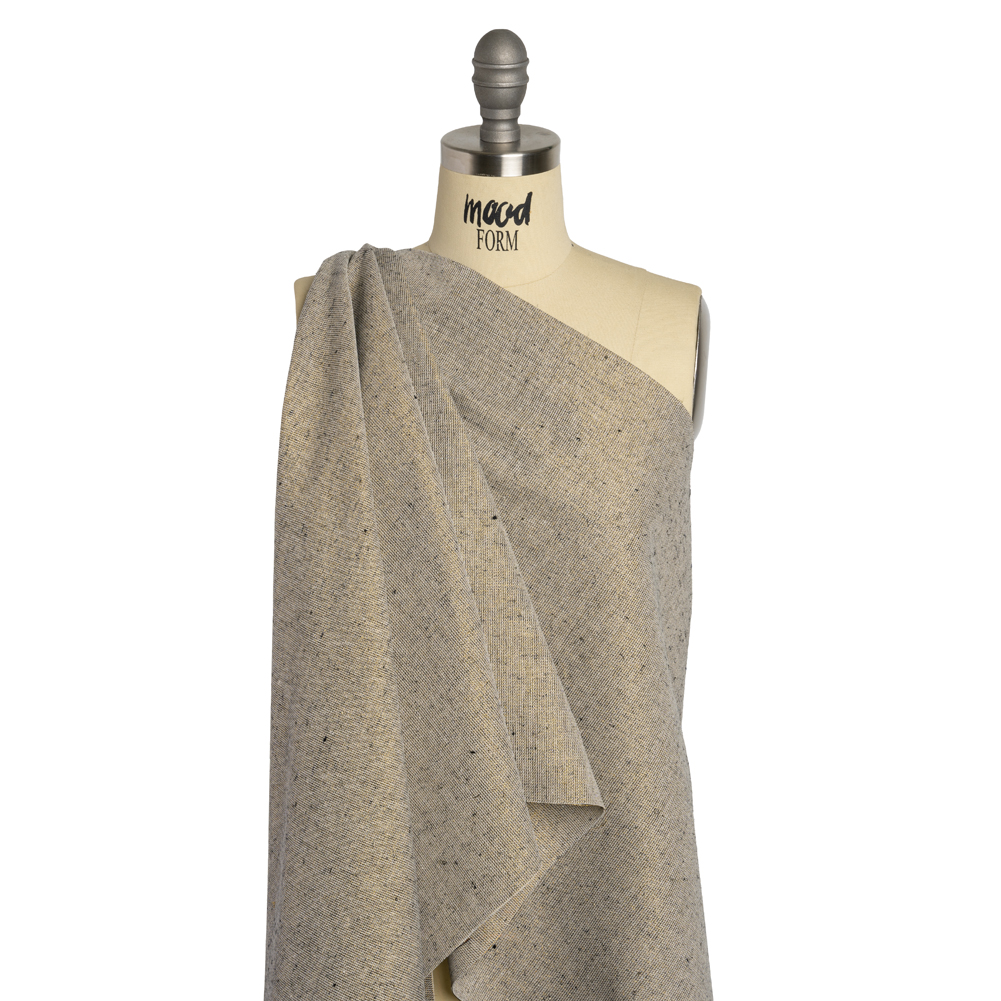 The moon and stars intermingle across this White, Black and Gold Heavyweight Metallic Linen Woven, featuring a structured drape and coolly tactile hand.Suggested Projects: Blazers, Skirts, Dresses, PantsContent: Linen, LurexStretch: NoneOpacity: Slightly TranslucentRegal designs spur forth from this white, black, and metallic gold linen woven. Heavy in weight and cool, with a tactile hand, its structured drape lends beautifully to tailored designs such as trousers and blazers, or to pleated skirts and shaped mini dresses that glint under the light. Slightly translucent, we suggest adding a lining for full opacity, structure, and comfort of wear.