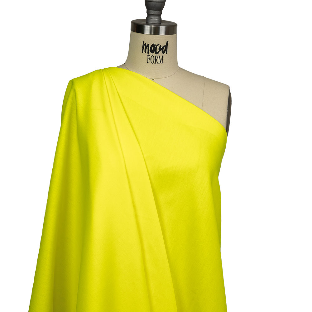 Make garments sure to stop traffic in our Hi-Vis Safety Yellow Polyester and Cotton Poplin! Composed of smooth cotton-poly fibers, this poplin boasts a neon yellow shade sure to turn heads. Due to the lightweight feel and semi-structural drape, it is ideal for sewists of all skill levels. Create basic button-ups, easy shorts and rompers, or structured sundresses for a day out. While somewhat translucent, a lining is not needed for most topweight applications.