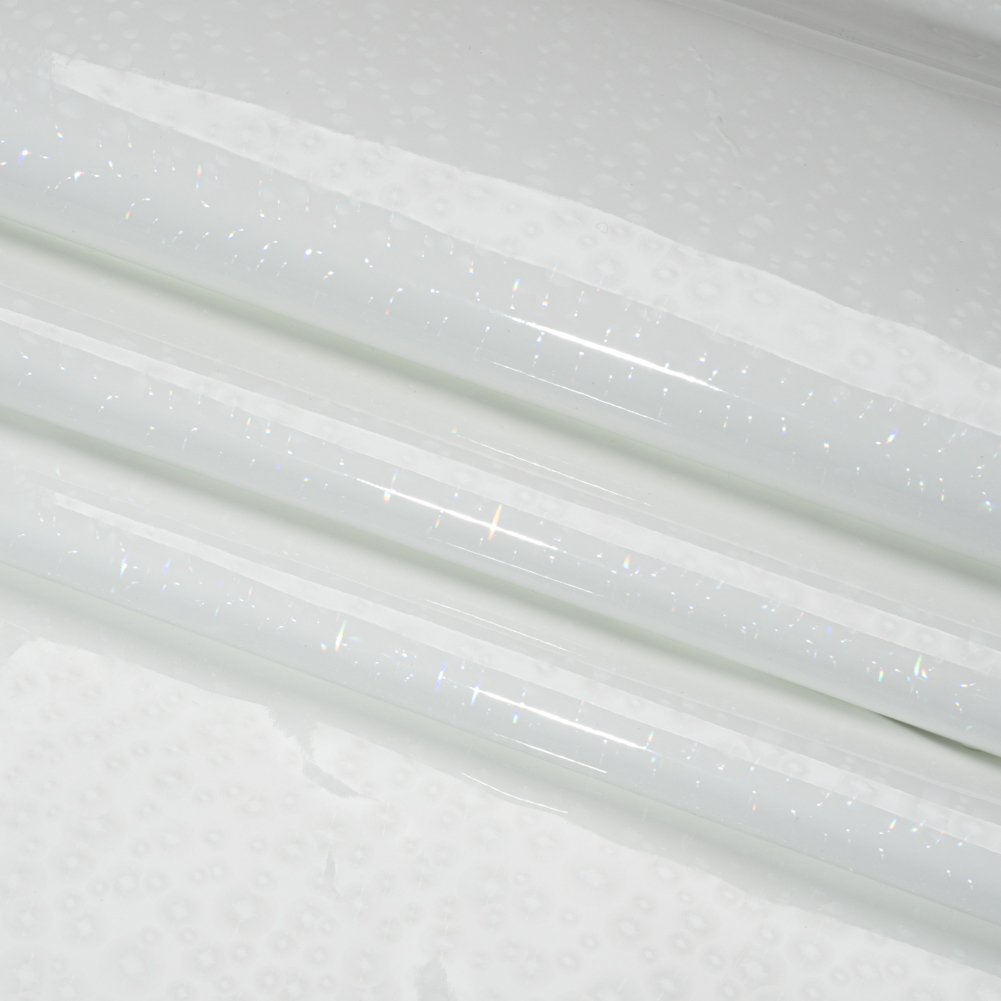 Create your own snowy domain like the White Witch when you wear this Ivory Holographic 3D Bubble Dot Faux Patent Leather—featuring a sleek hand and structured yet malleable drape.Suggested Projects: Jackets, Pants, Skirts, AccessoriesContent: 55% Polyurethane, 45% PolyesterStretch: NoneOpacity: OpaqueParty all night—and stay warm on your way home in the early mornings—in this eye-catching holographic faux patent leather. Featuring an ivory bubble dot design, it gleams with a 3D effect that’s sure to turn heads and spark conversations while keeping you warm and comfy with its soft, fuzzy backing. With its slick, sleek hand and structured but malleable drape, this waterproof and tear-resistant material is perfect for creating futuristic jackets and coats, attention-grabbing pants and skirts, or bags that are ideal for holding all your rave essentials. Opaque and extremely comfy thanks to a soft backing, a lining is not necessary. WARNING: Cancer and Reproductive Harm - www.P65Warnings.ca.gov.