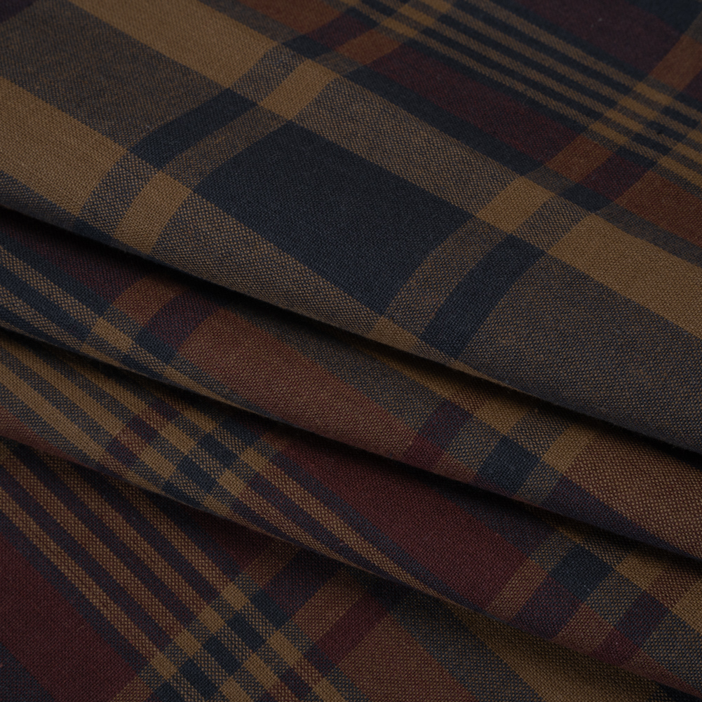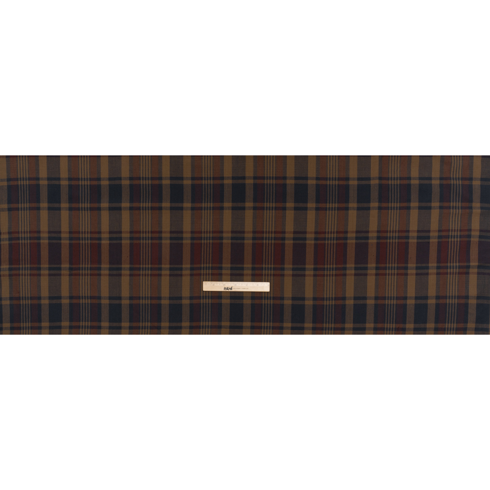 Homespun Cotton Shirting - Brown, Burgundy and Navy Plaid - Deadstock