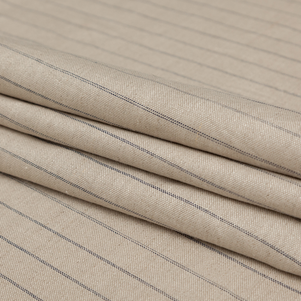 Humus and Blue Depths Double Broken Pinstriped Linen and Rayon Woven
