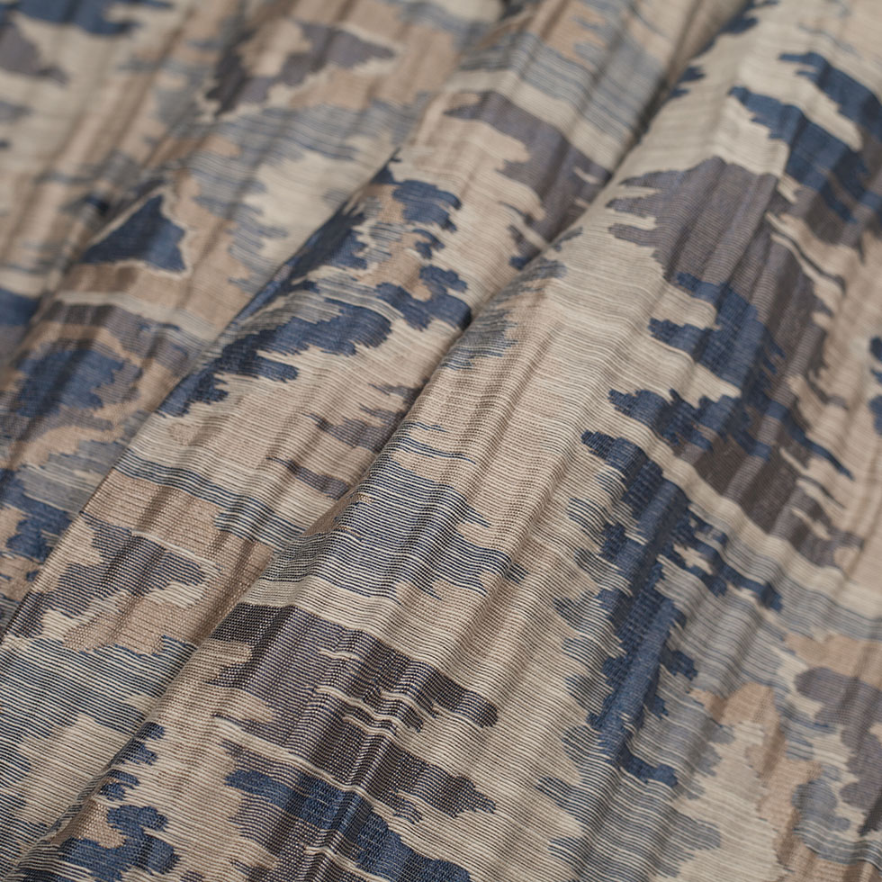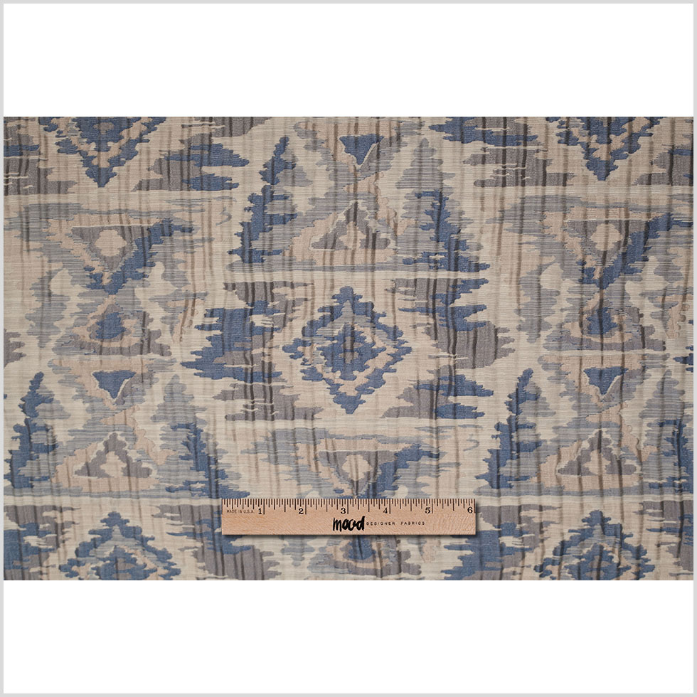 Indian Blue/Beige Ikat-Like Geometric Poly/Cotton Brocade