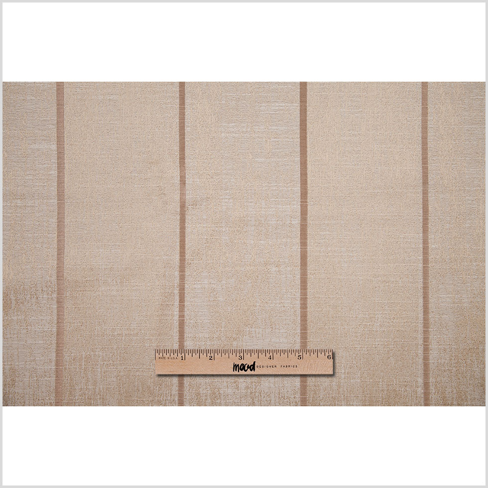 Arriving at Mood all the way from India, we have this wonderfully elegant polyester-cotton home fabric featuring texture upon texture: embedded stripes nest along side a striated, woven background in a beautiful sand coloration.