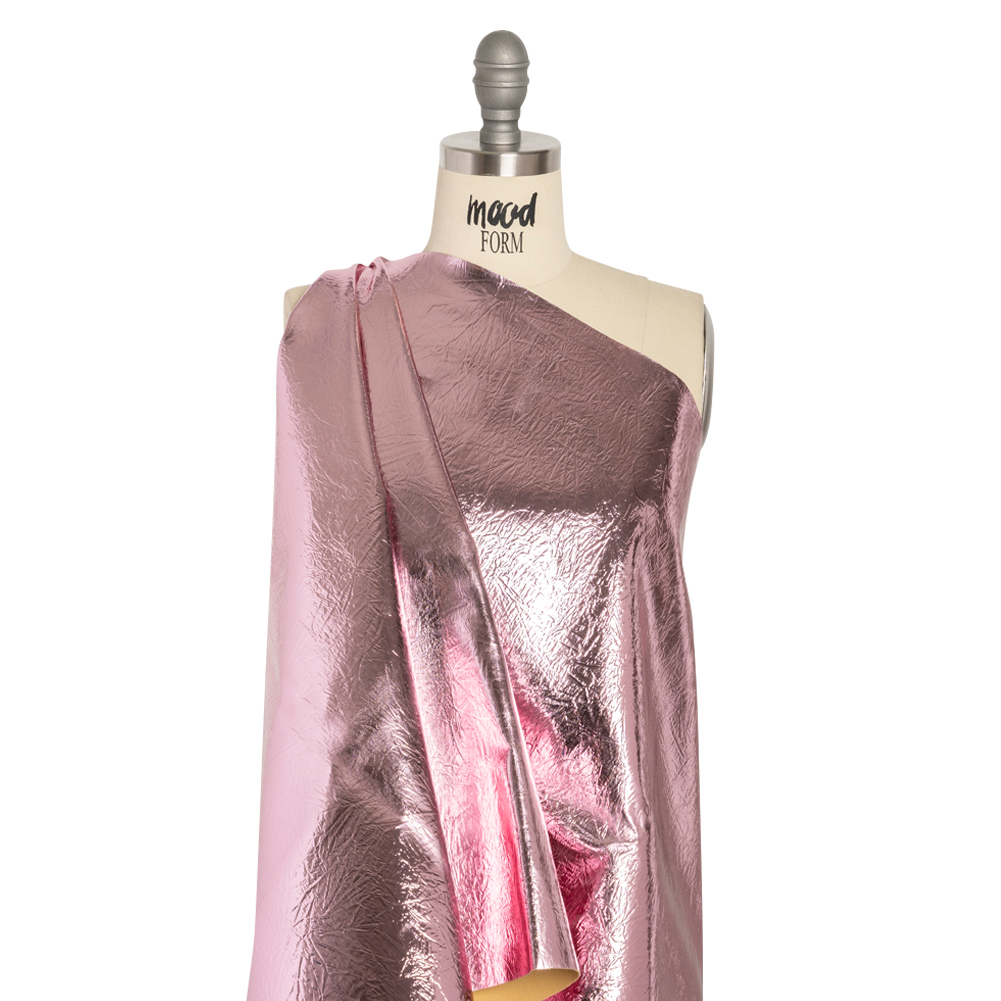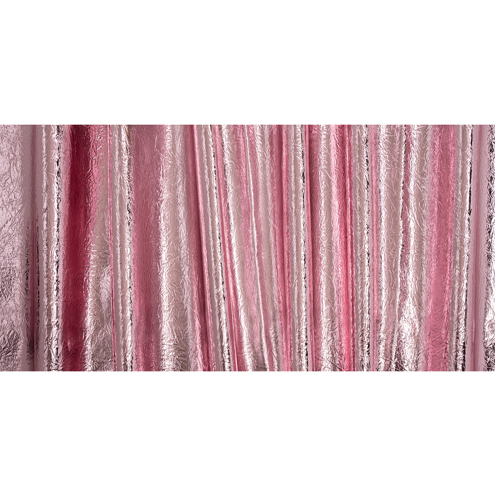 Spark a conversation with this Ingot Pink Crinkled Fabric-Backed Mirror Vinyl. A pink, crinkled yet slick face is paired with a soft, mustard-yellow fabric backing that increases comfort and lends durability to an already structured drape. Find yourself easily channeling the confidence and creativity that this reflective vinyl exudes as you sport statement handbags and belts, or be an oasis at your next desert rave with mesmerizing corsets and skirts! Take the time to turn your home into an exciting presentation of your personality with unique ottomans, comfortable barstool covers, and more! Absolutely opaque, a lining is not necessary. WARNING: Cancer and Reproductive Harm - www.P65Warnings.ca.gov.