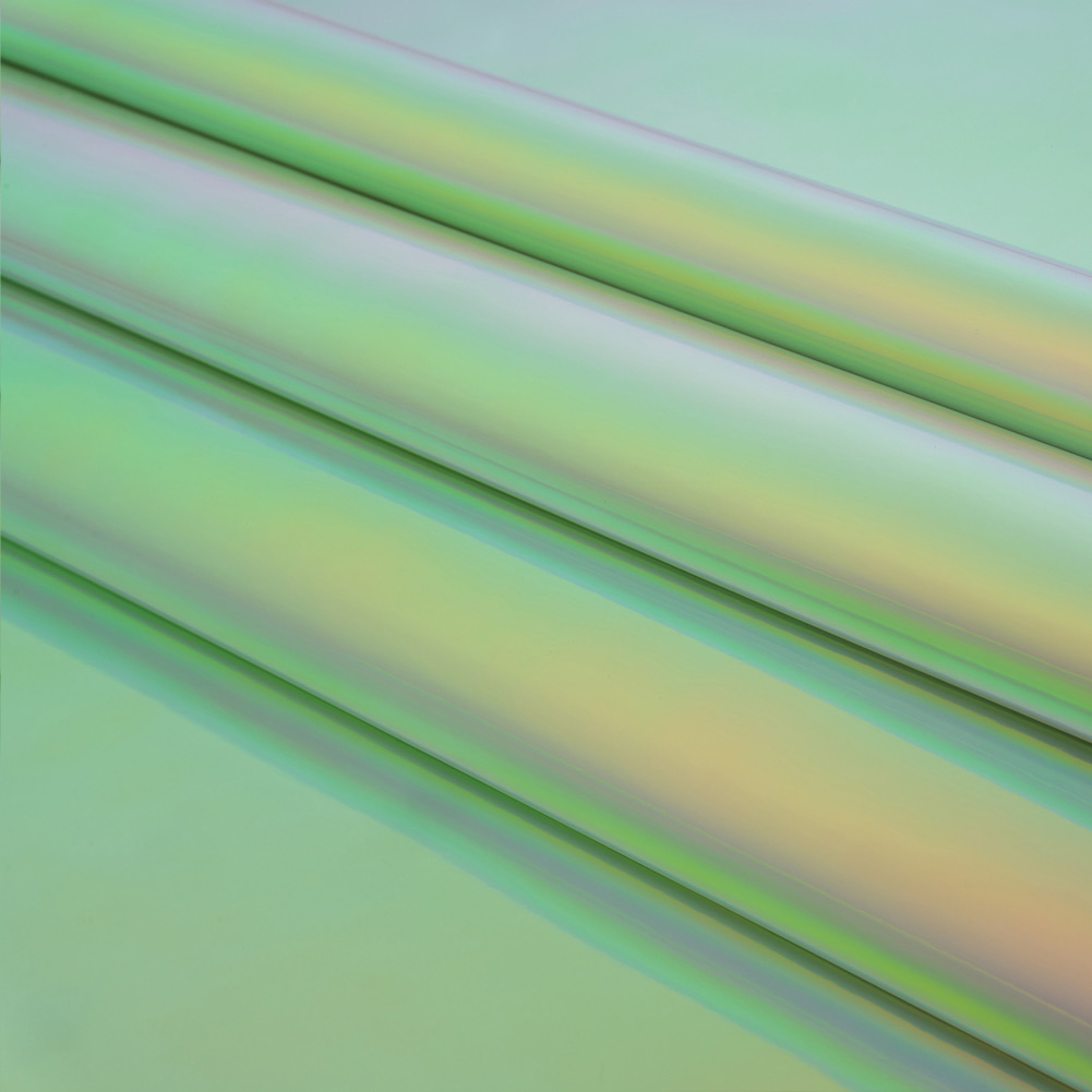Marvel at the mother-of-pearl mystique of this Kiki Iridescent Purple and Turquoise Fabric-Backed Vinyl! With a metallic iridescence, the face of this vinyl swirls and shifts through shades of lavender, bright teal, and gold, while the reverse showcases an ultra-soft brushed fabric backing.