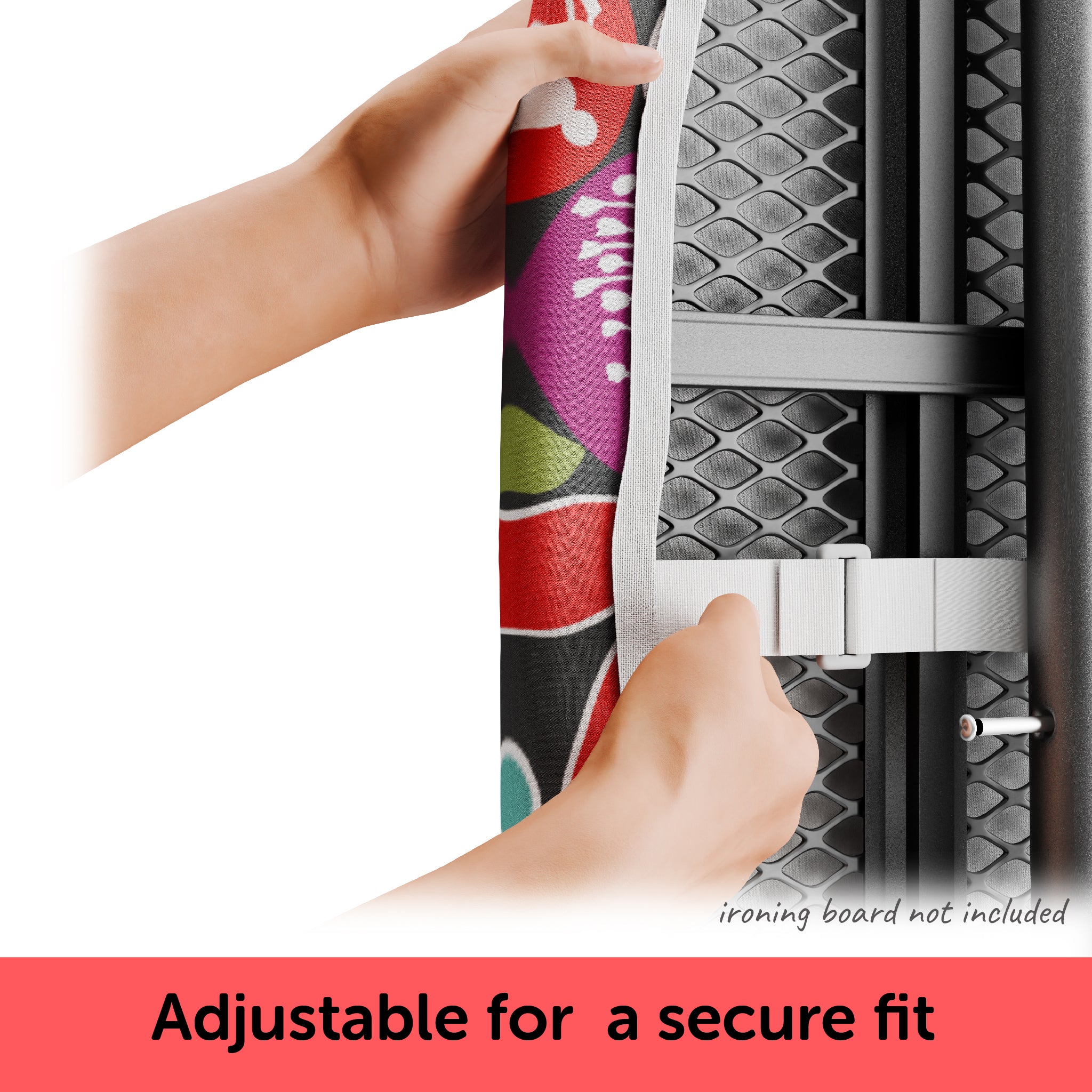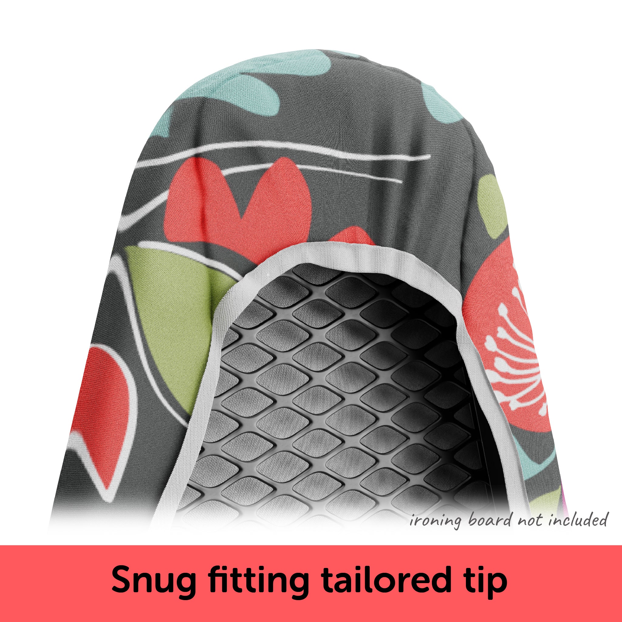 - EASY and SECURE FIT. A tailored nose pocket for a snug fit on your ironing board up to 15" x 54" (38 x 137cm). A strong elastic edge and two straps hold the cover securely for a smooth, wrinkle-free surface, reducing ironing effort.