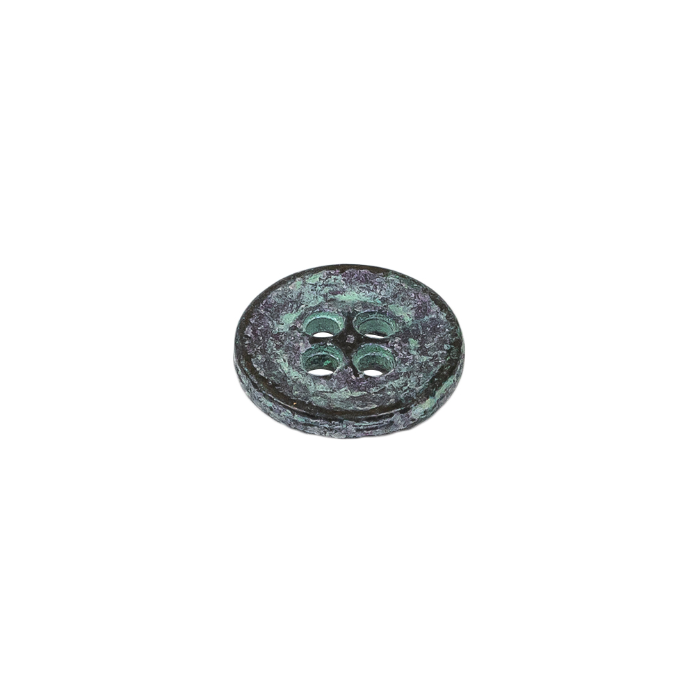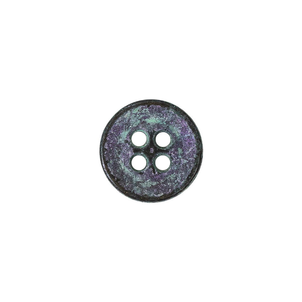 Here, we have a collection of Italian Aqua and Lilac Oxidized Metal 4-Hole Buttons featuring four central holes on a dimpled face, with beveled rims and a flat backing. These unique buttons are finished in an aqua and lilac colorway similar to that of aged copper.This specific button is size 20L/12.5mm with a gauge of 2.14mm. We also offer this collection in sizes 16L/10mm and 24L/15mm.Mood’s variety of metal buttons are great for innumerable applications from leather fashions and projects to coats, suits, and trousers; to denim clothes and totes, to handbags, even pillow accents and more! Browse our expansive metal button category to find what you are looking for; considering blazers, jeans, fun accessories, and beyond?—you name it, we’ve probably got it!